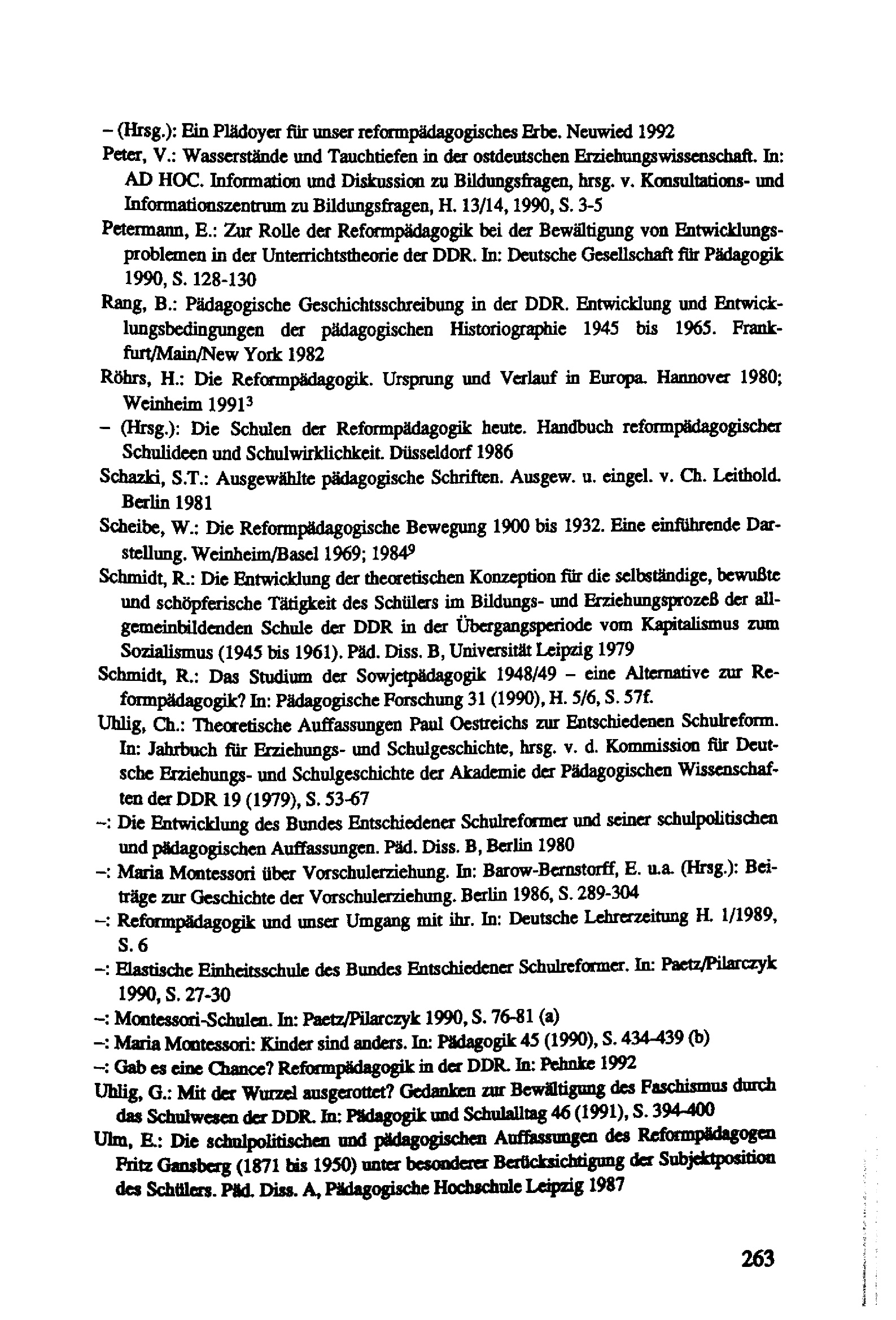 Verunsicherung versus Wendehalsigkeit : "Reformpädagogik" als Thema ostdeutscher Erziehungswissenschaft im Vereinigungsprozeß