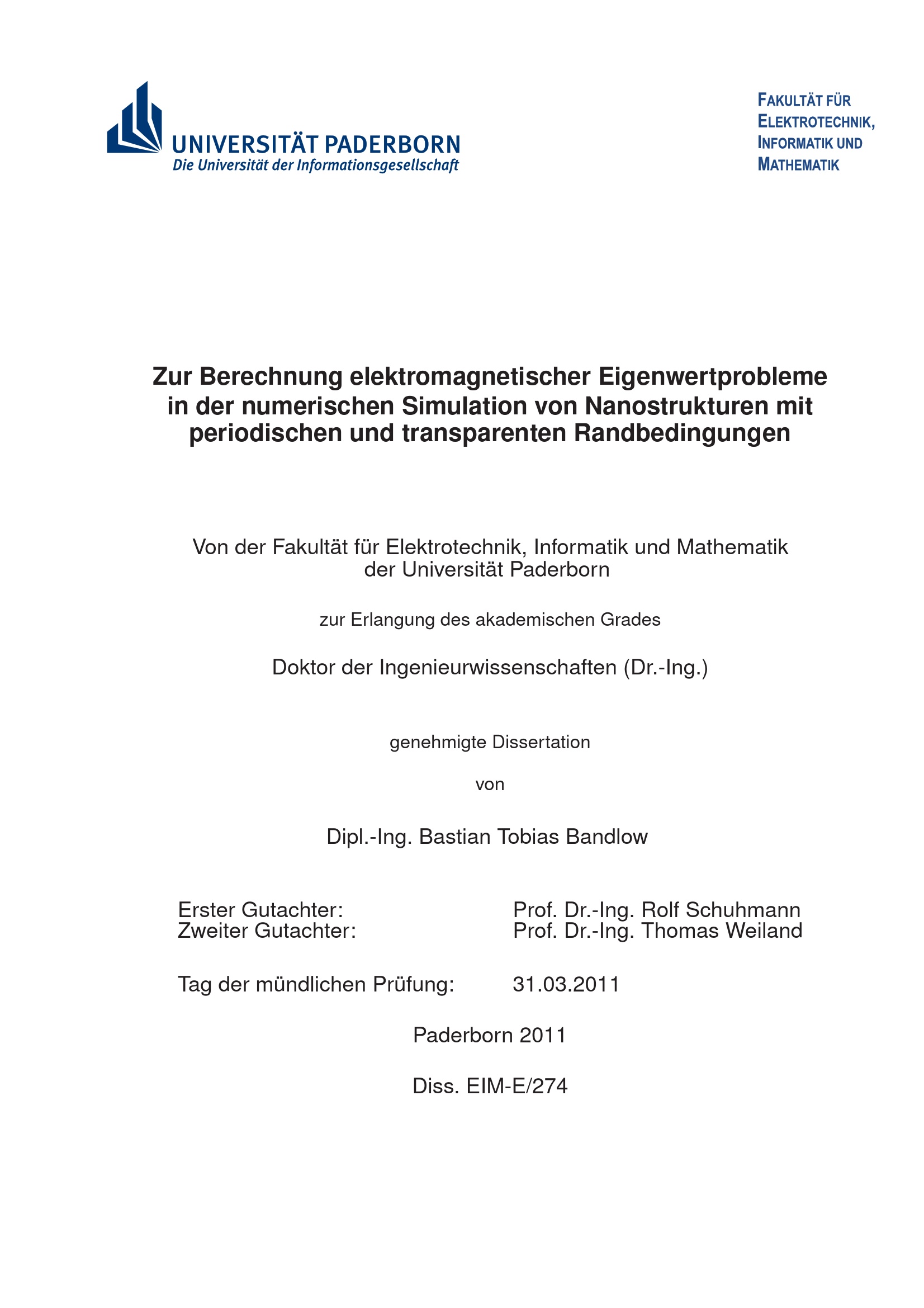 Zur Berechnung elektromagnetischer Eigenwertprobleme in der numerischen Simulation von Nanostrukturen mit periodischen und transparenten Randbedingungen