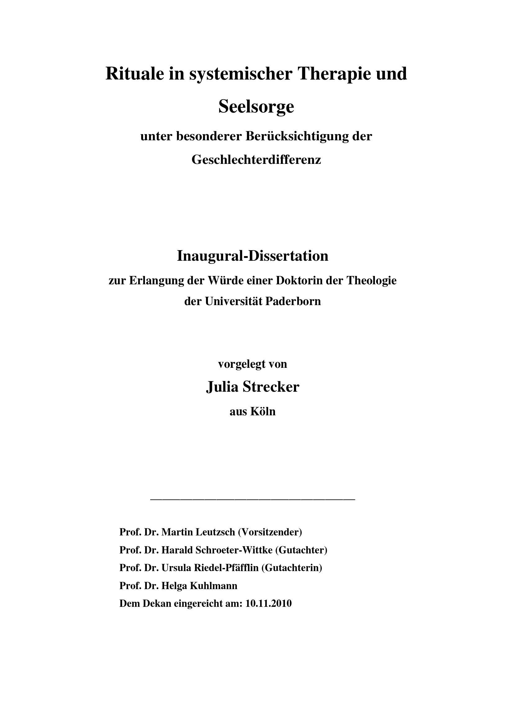 Rituale in systemischer Therapie und Seelsorge unter besonderer Berücksichtigung der Geschlechterdifferenz