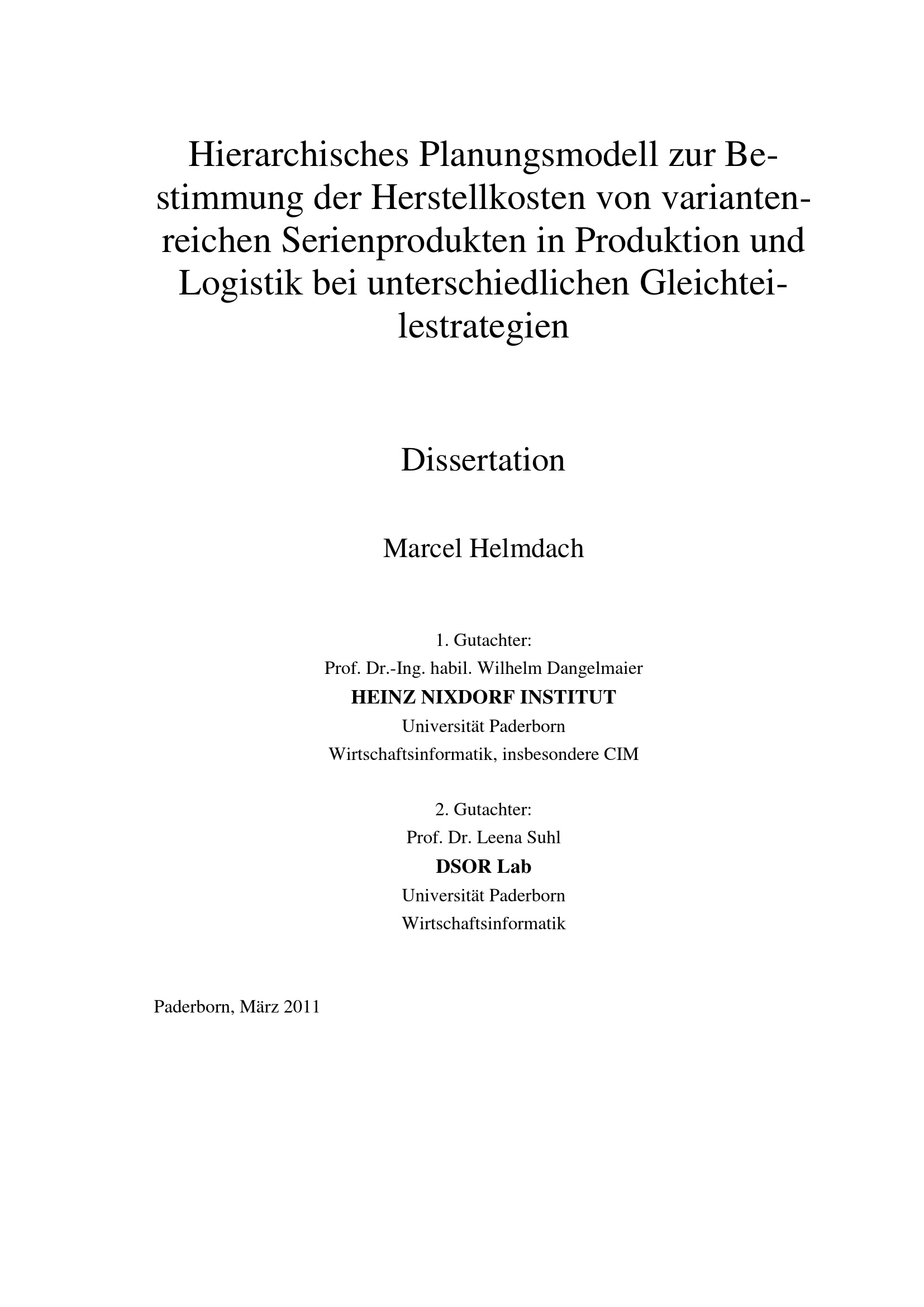 Hierarchisches Planungsmodell zur Bestimmung der Herstellkosten von variantenreichen Serienprodukten in Produktion und Logistik bei unterschiedlichen Gleichteilestrategien