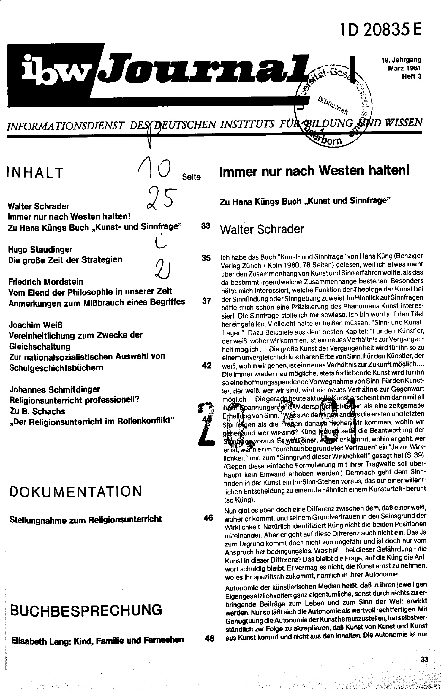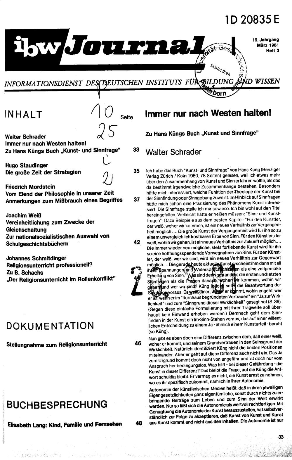 Immer nur nach Westen halten : zu Hans Küngs Buch "Kunst und Sinnfrage"