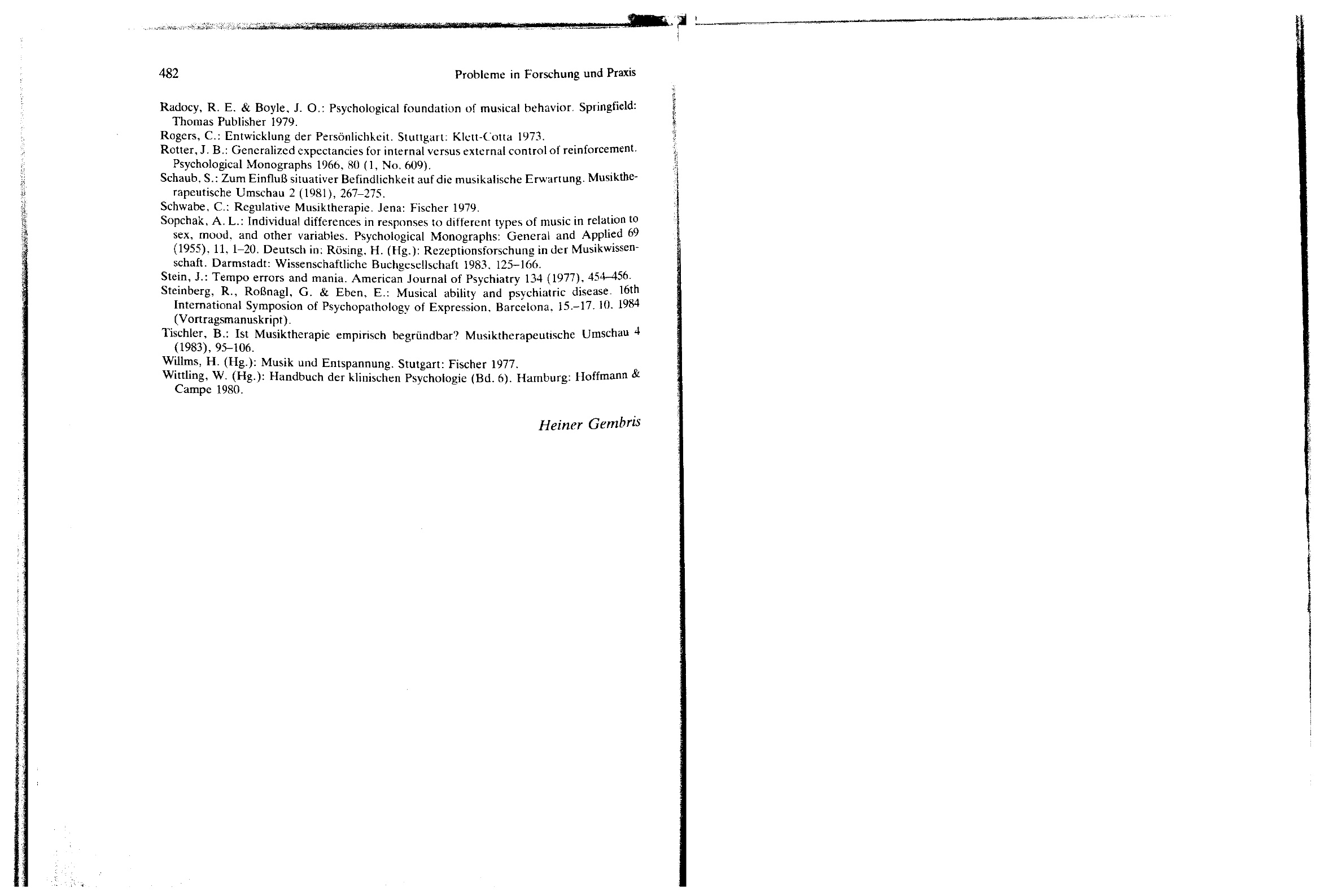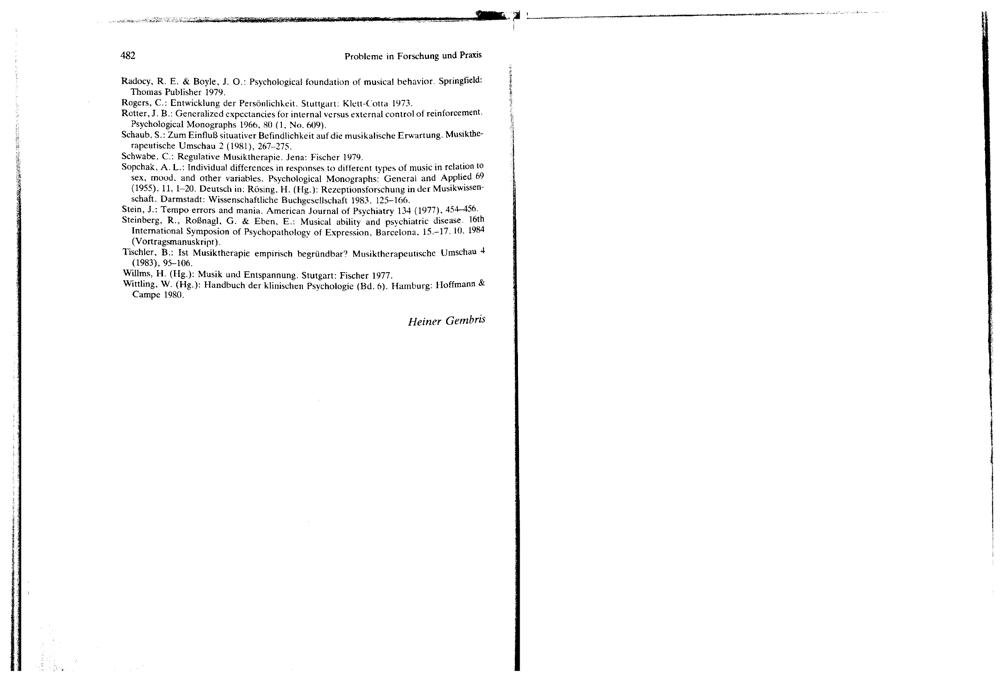 Musiktherapie : Probleme der Forschung und Praxis