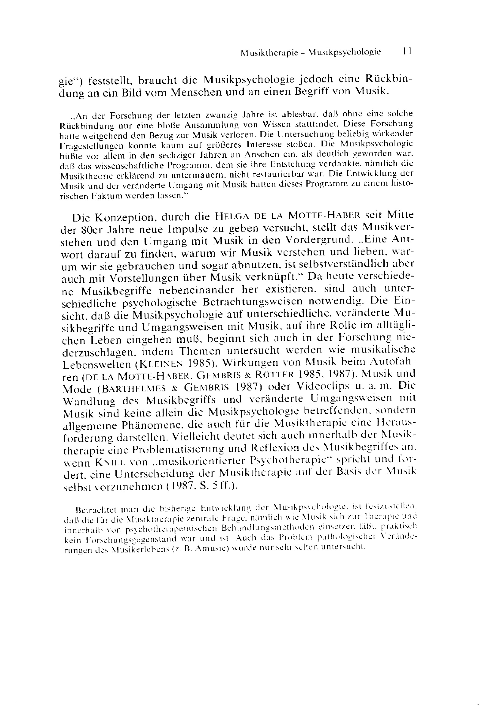Zum Verhältnis Musiktherapie - Musikpsychologie : Standpunkte und Perspektiven
