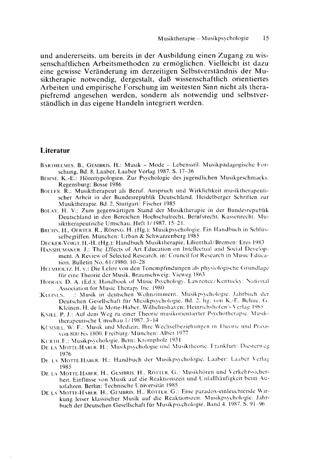 Zum Verhältnis Musiktherapie - Musikpsychologie : Standpunkte und Perspektiven