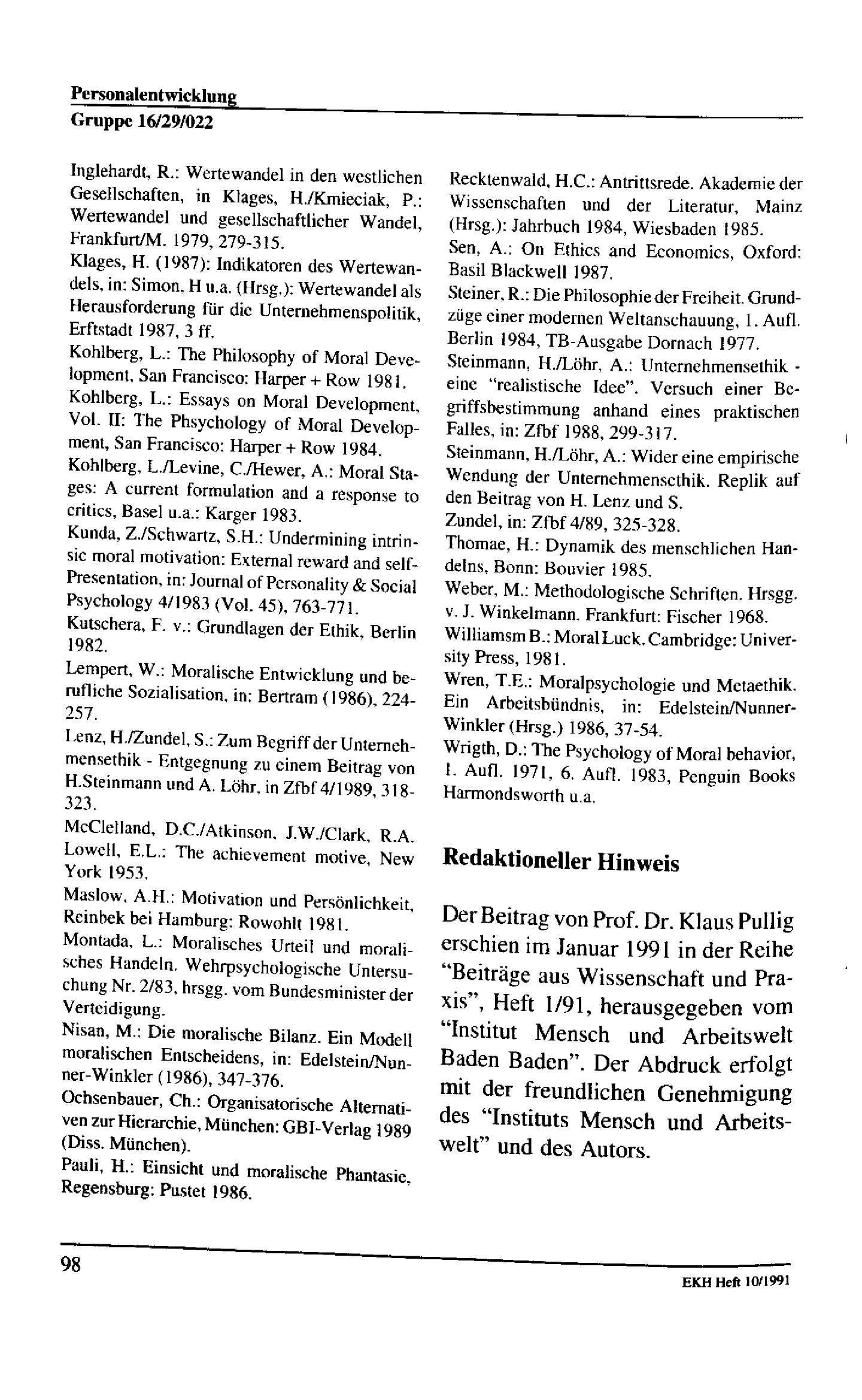 Moralische Motivation der Mitarbeiter : ein Beitrag zum Thema Wirtschaftsethik