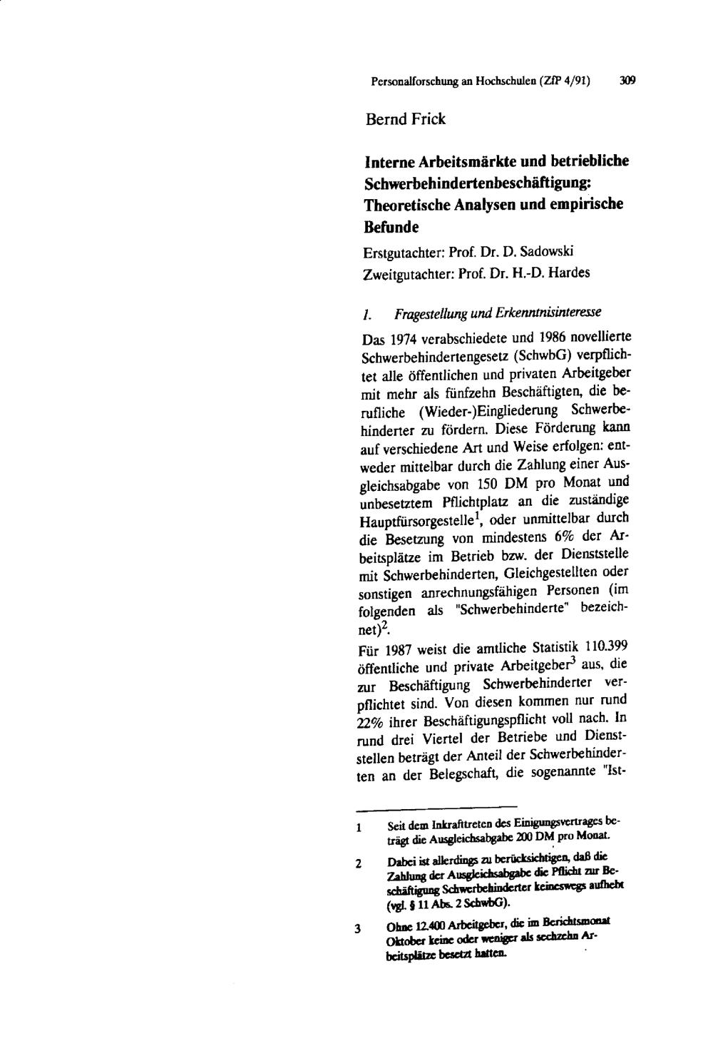 Interne Arbeitsmärkte und betriebliche Schwerbehindertenbeschäftigung: Theoretische[...]