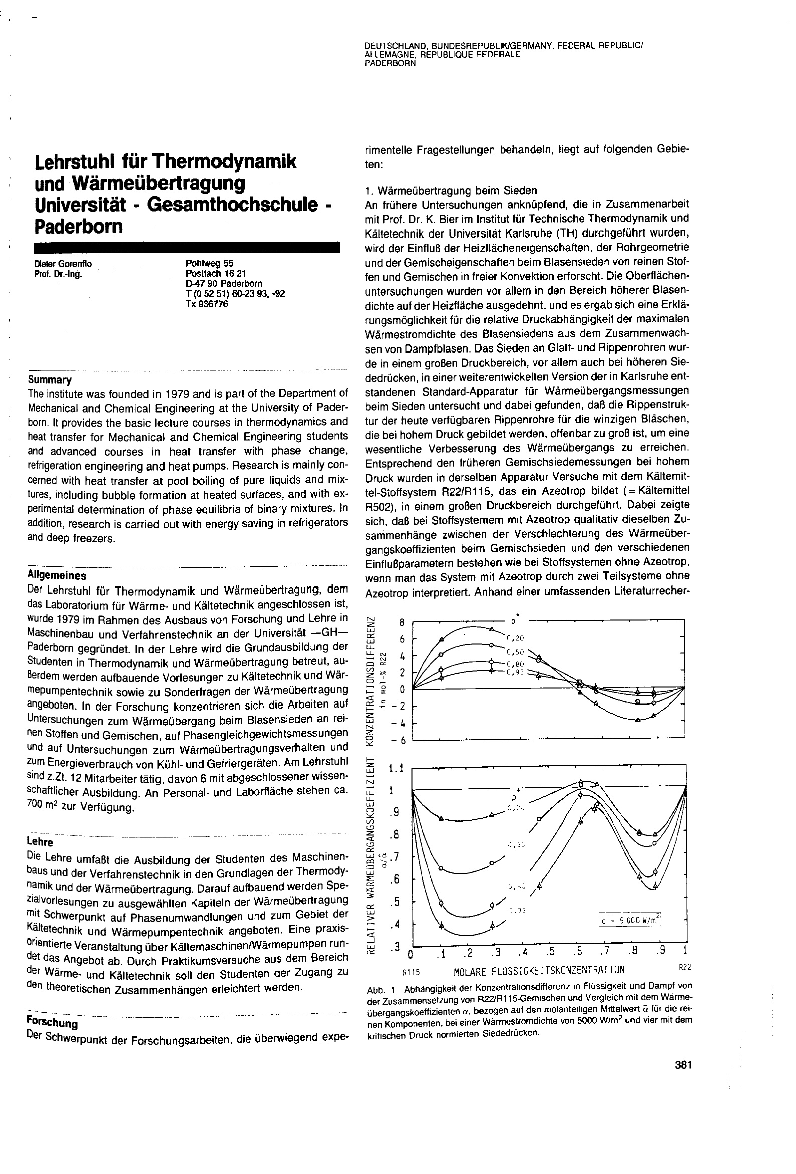 Lehrstuhl für Thermodynamik und Wärmeübertragung Universität - Gesamthochschule - Paderborn
