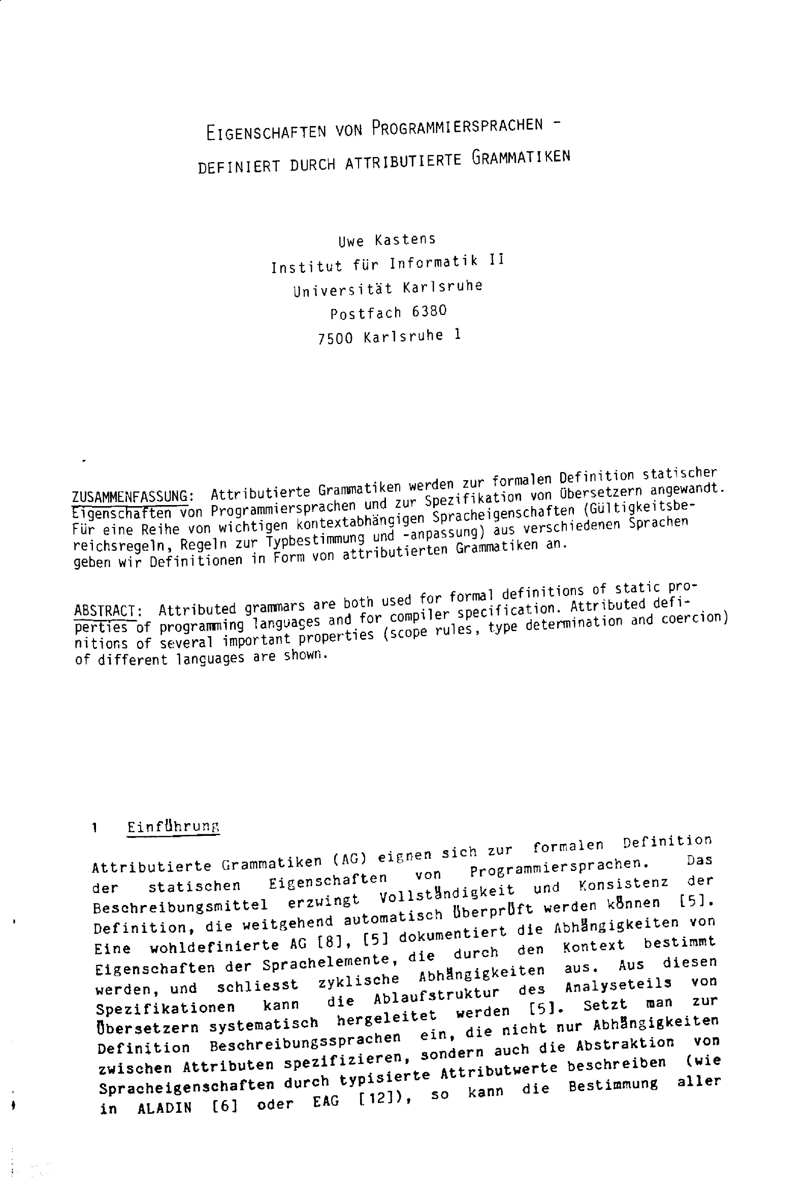Eigenschaften von Programmiersprachen : definiert durch attributierte Grammatiken