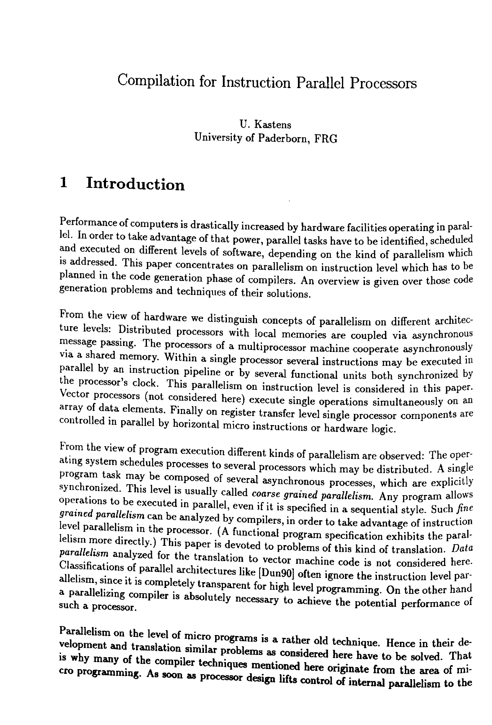 Compilation for instruction parallel processors