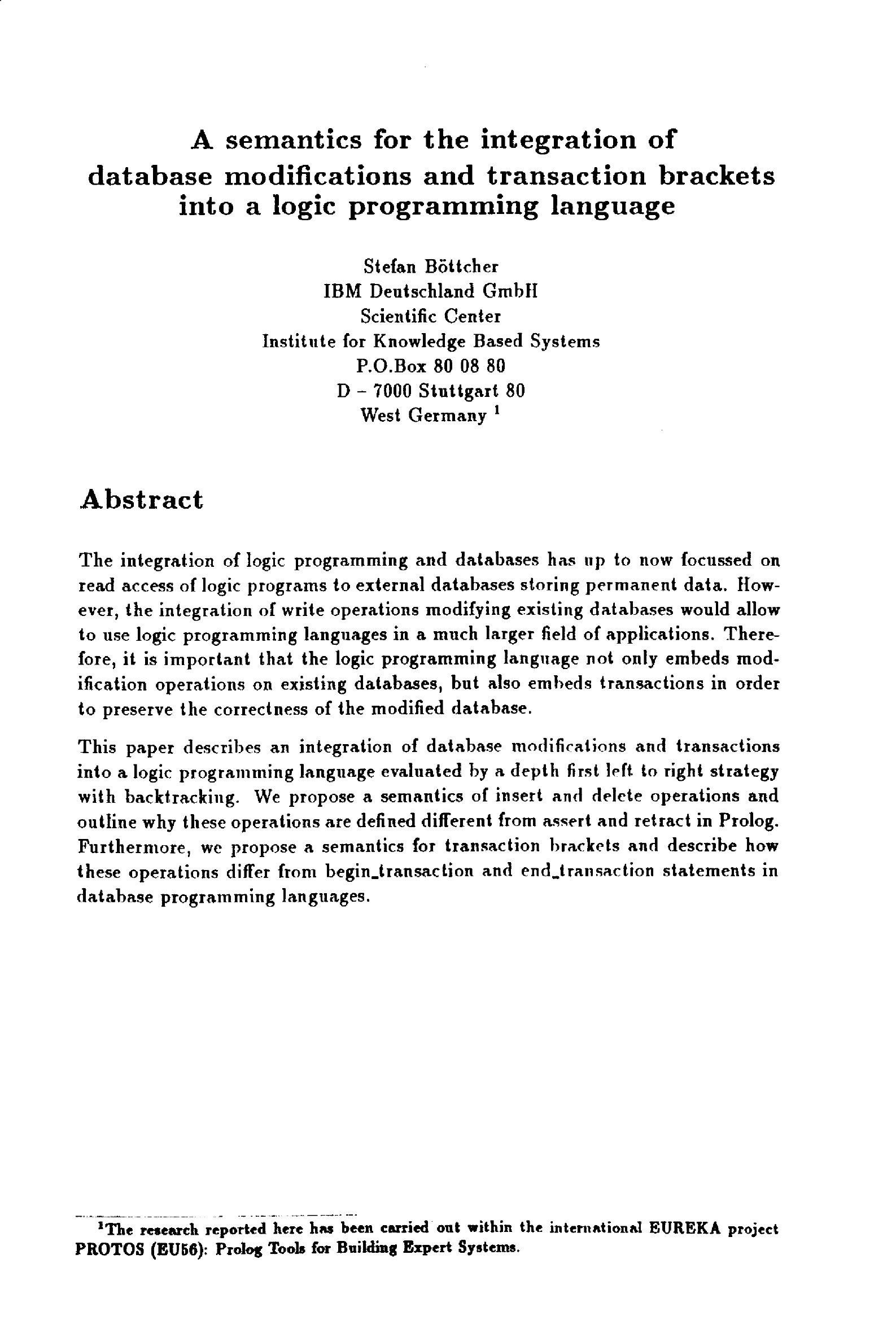 A semantics for the integration of database modifications and transaction brackets into a logic programming language