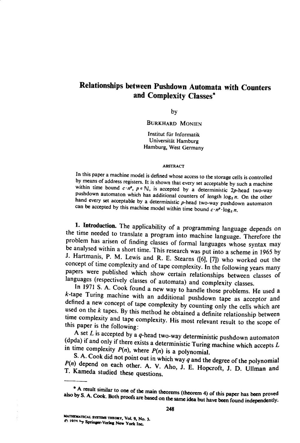 Relationships between pushdown automata with counters and complexity classes
