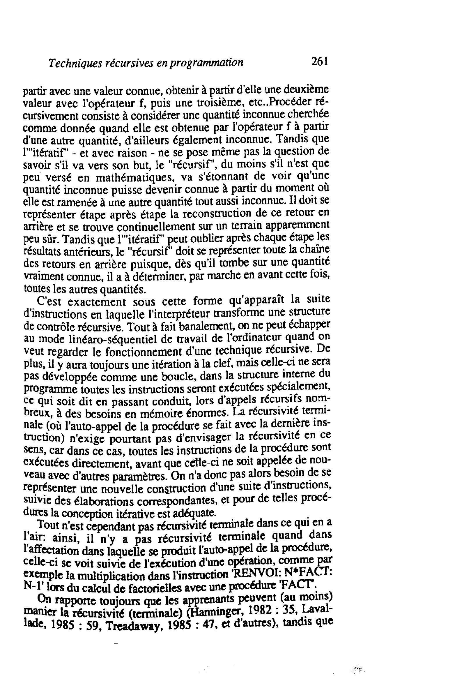Valeur didactique des techniques recursives en programmation