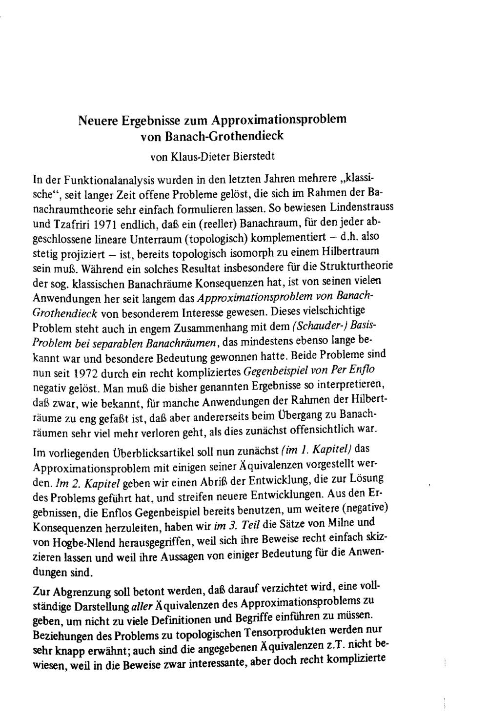 Neuere Ergebnisse zum Approximationsproblem von Banach-Grothendieck