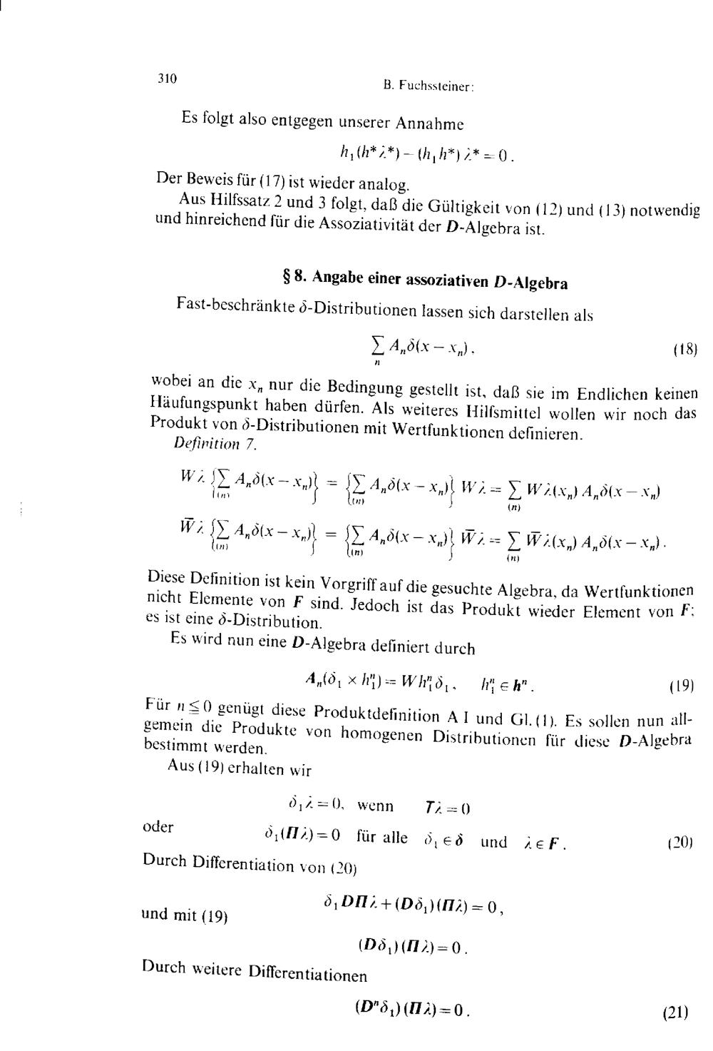 Eine assoziative Algebra über einem Unterraum der Distributionen