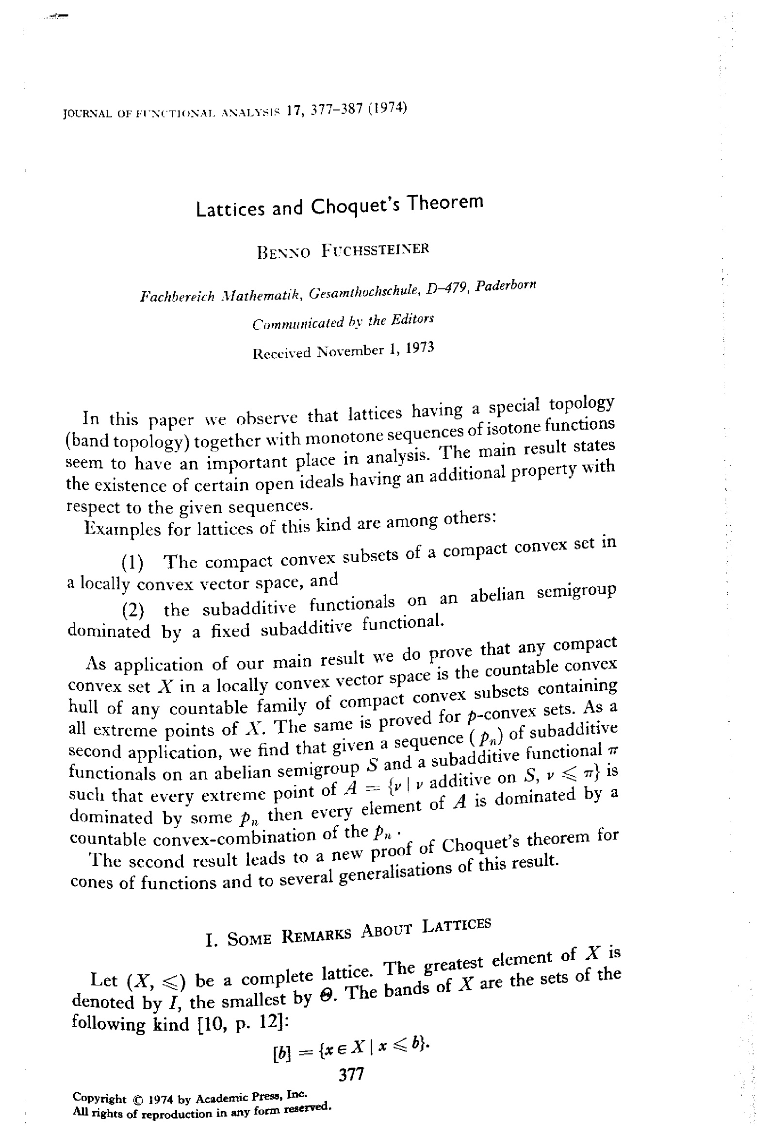 Lattices and Choquet's theorem