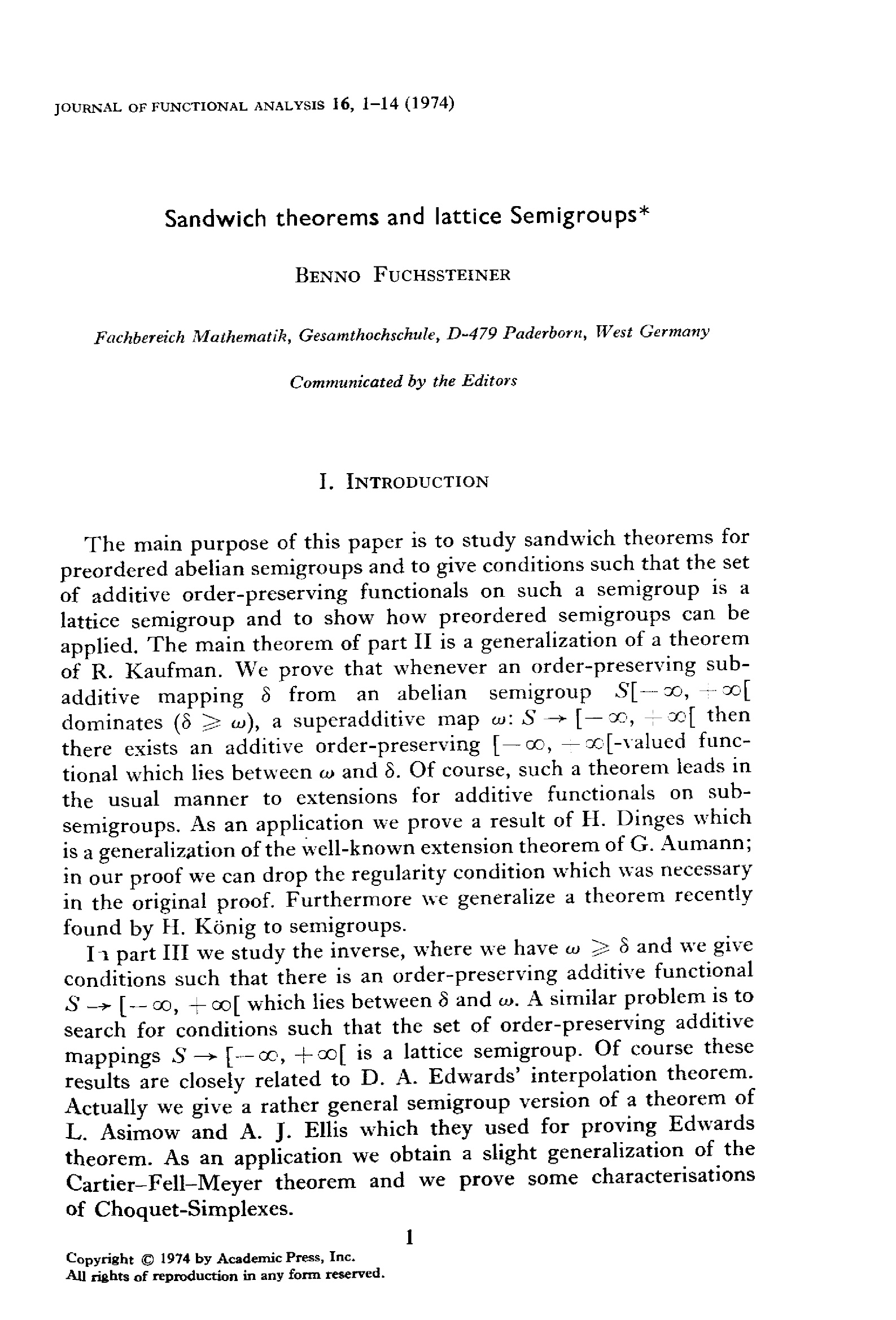 Sandwich theorems and lattice semigroups