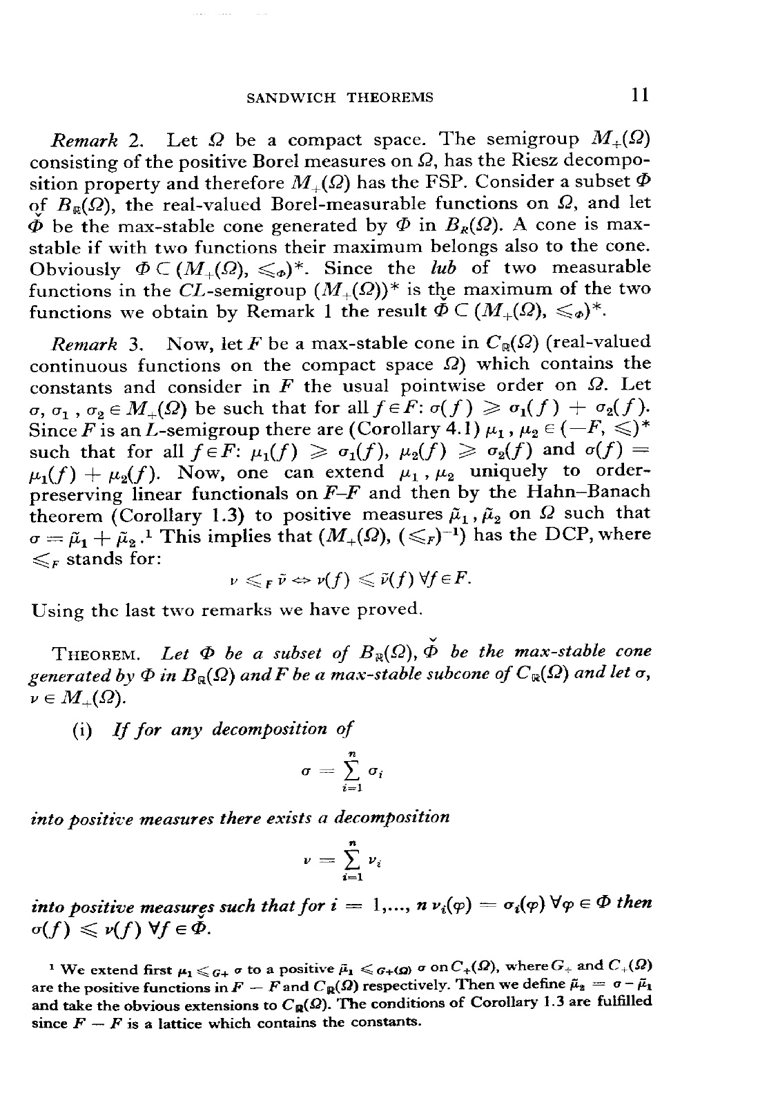 Sandwich theorems and lattice semigroups
