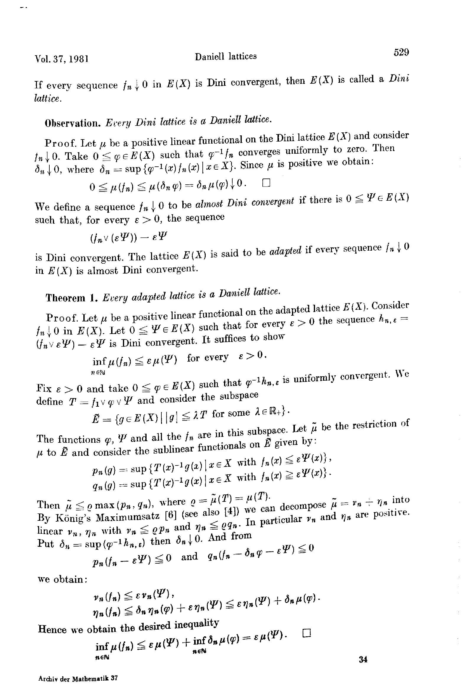 Daniell lattices and adapted cones : Herrn Prof. Dr. G. Braunss zum 50. Geburtstag gewidmet