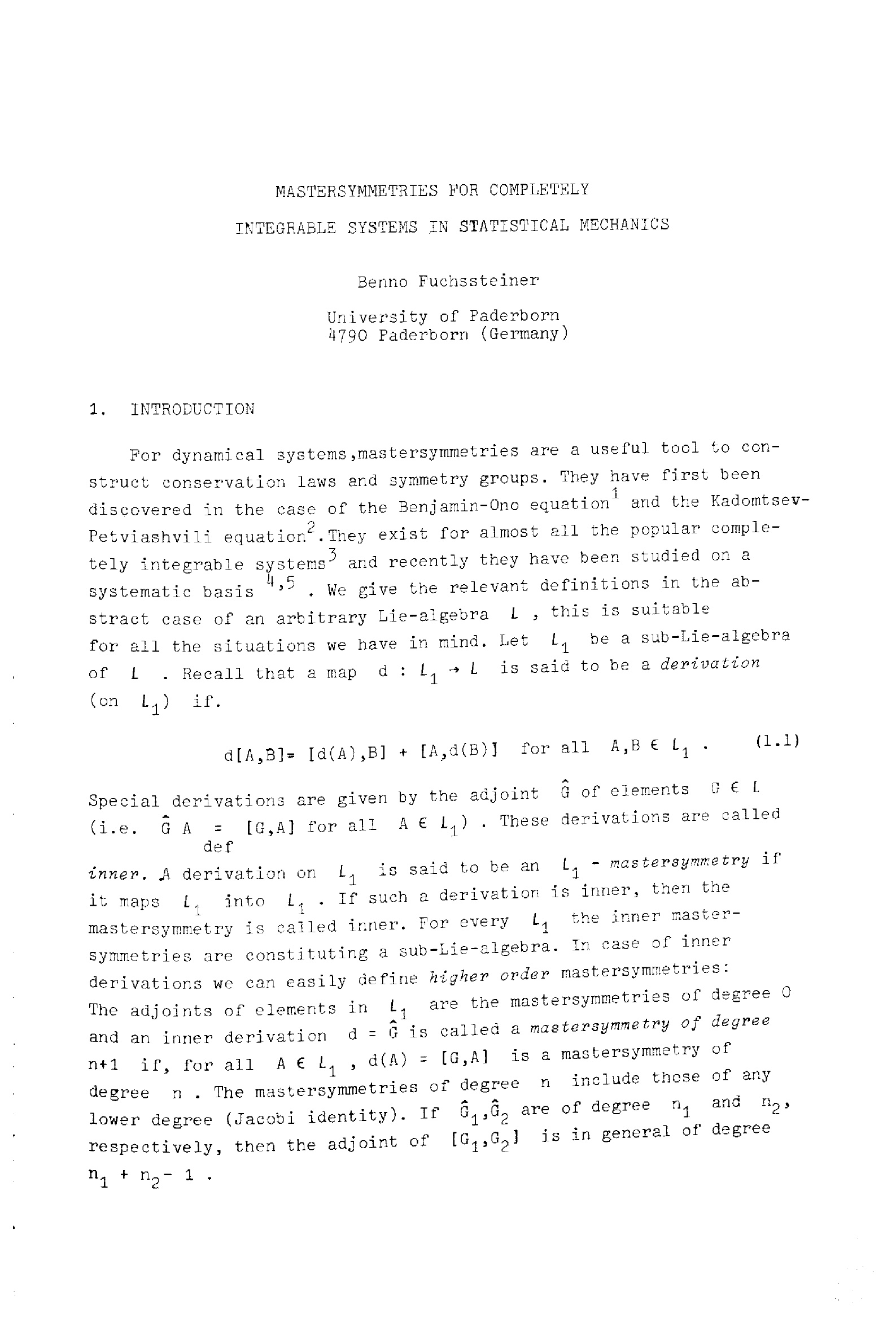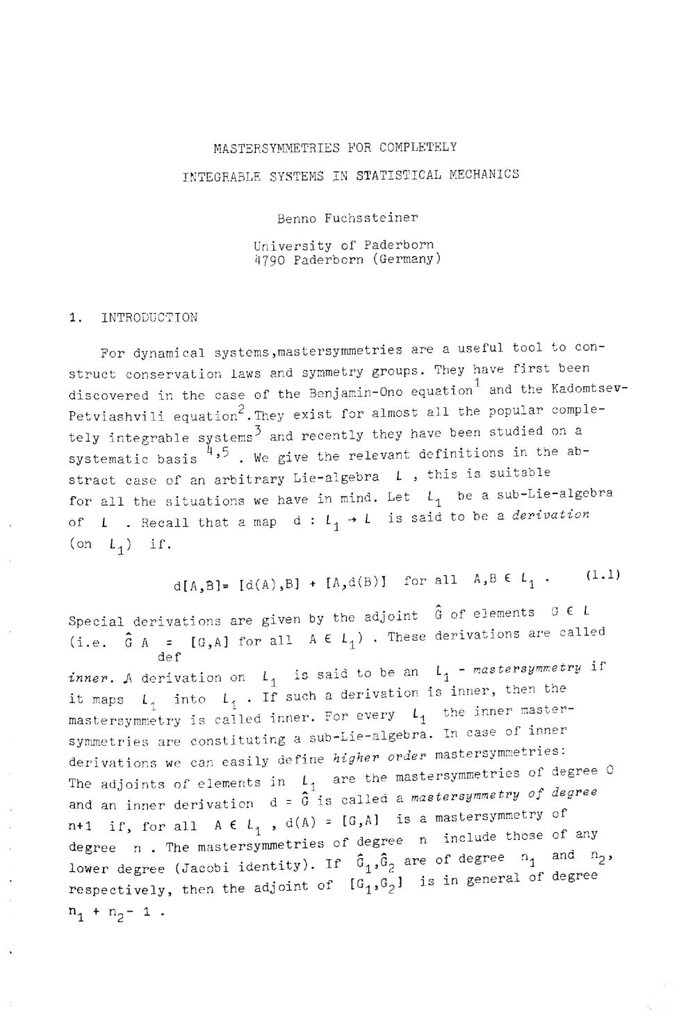 Mastersymmetries for completely integrable systems in statistical mechanics