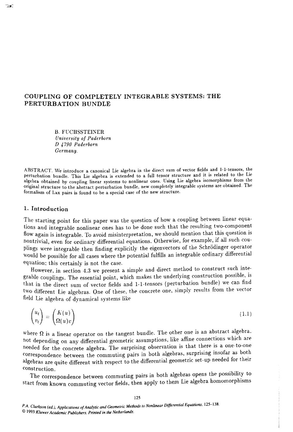 Coupling of completely integrable systems : the perturbation bundle