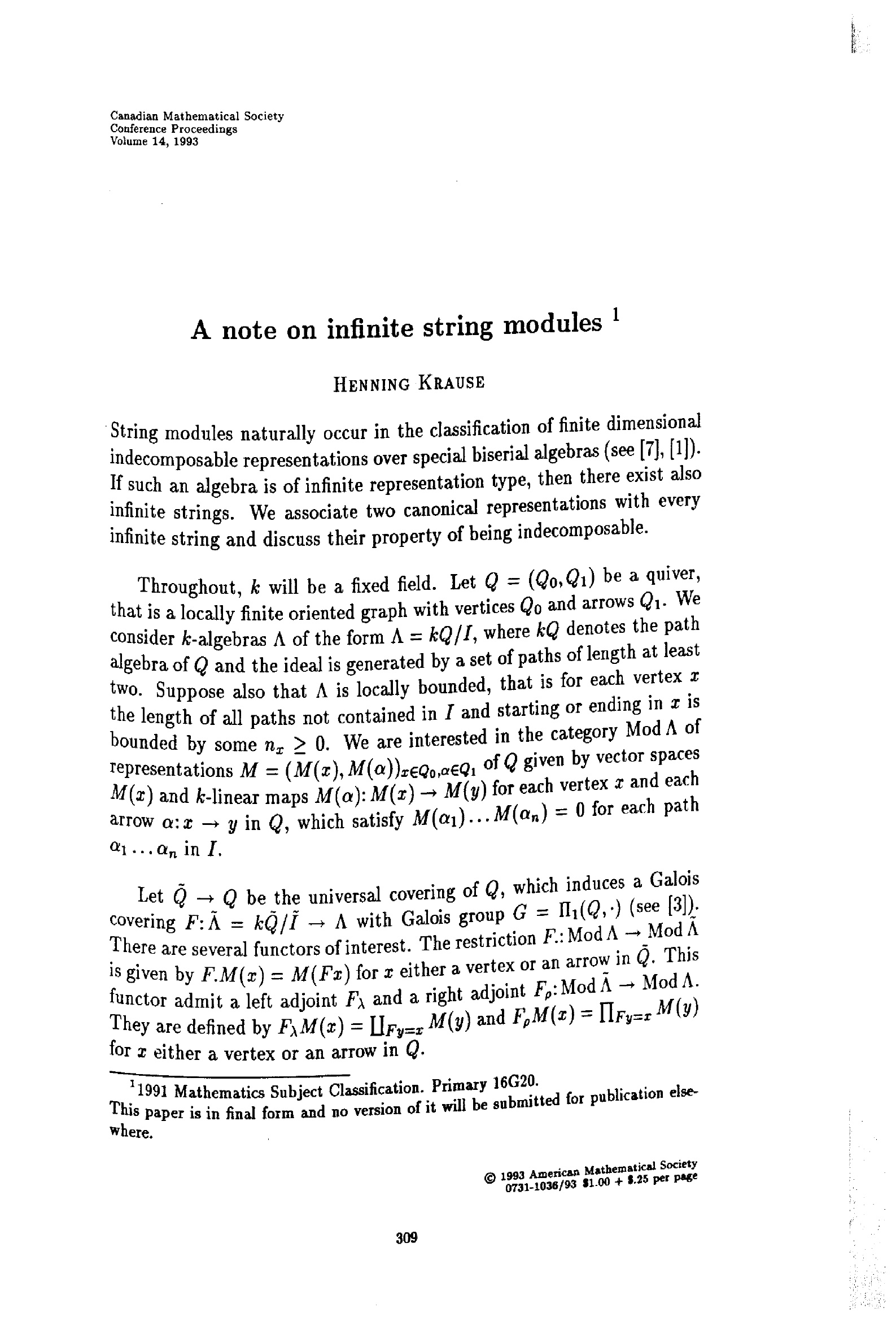 A note on infinite string modules