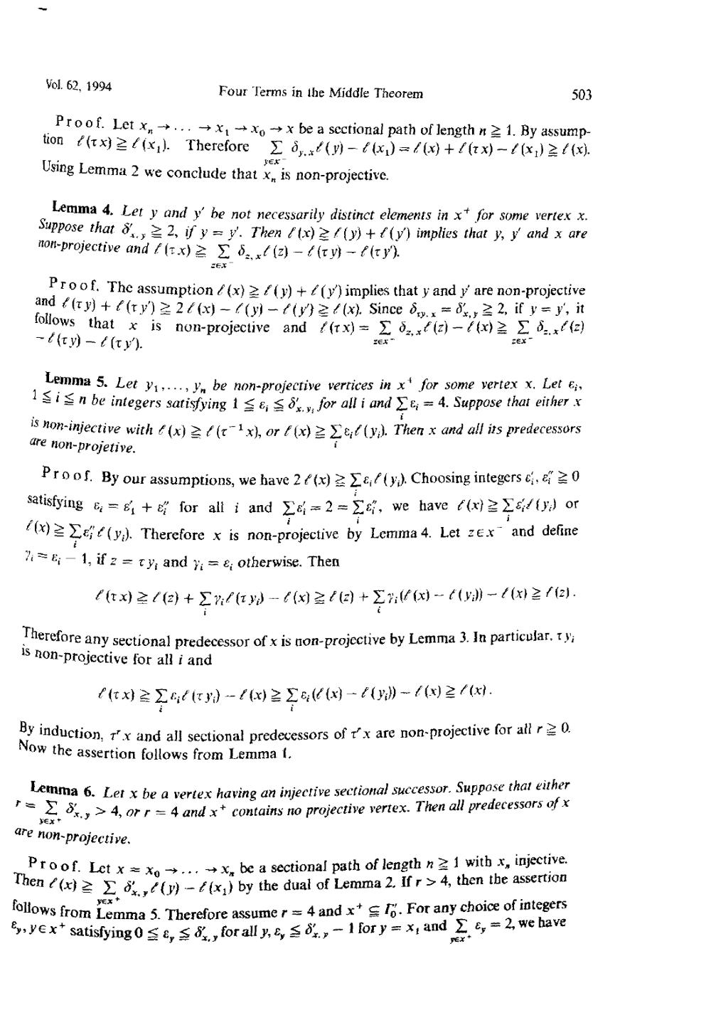 On the four terms in the middle theorem for almost split sequences