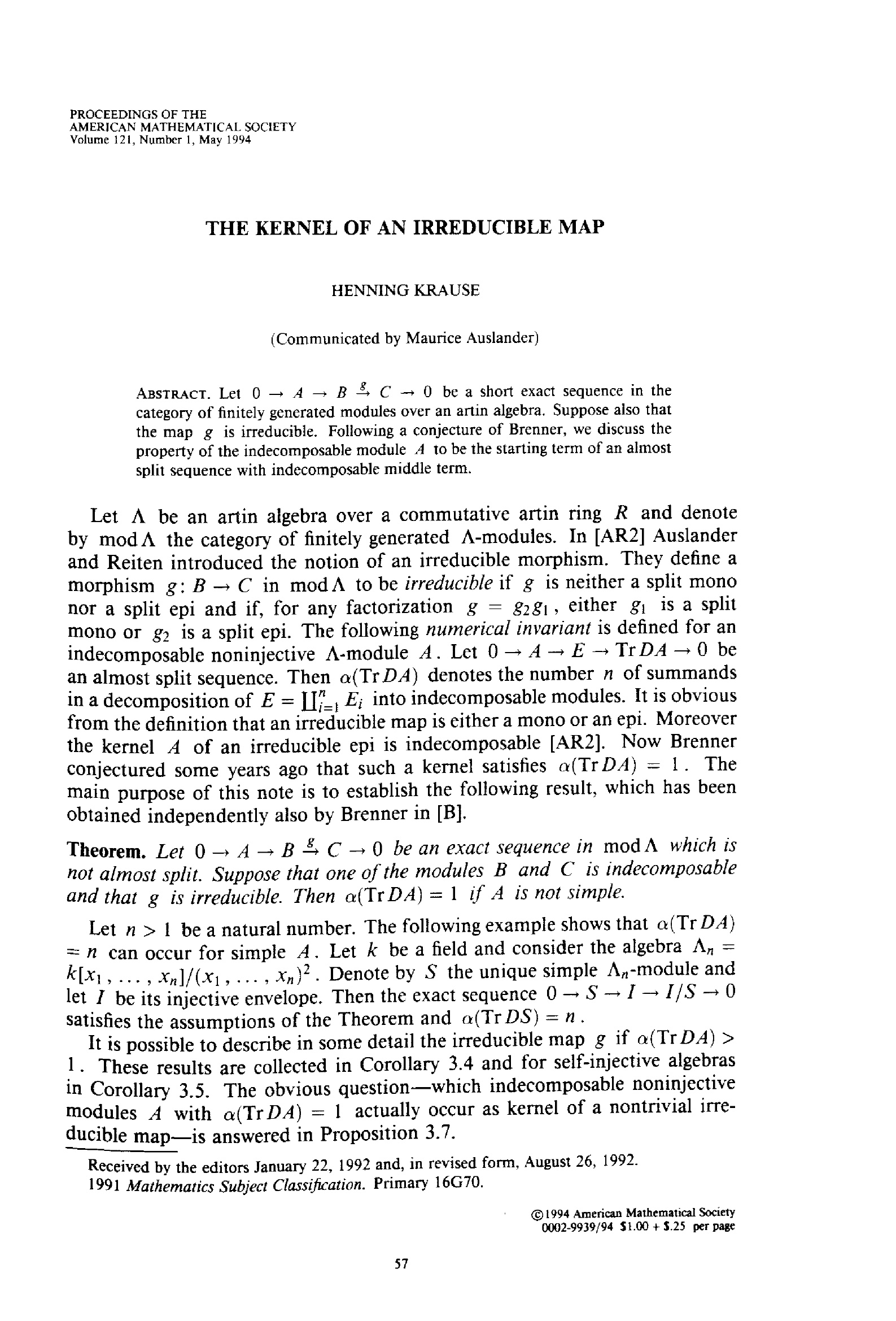 The kernel of an irreducible map