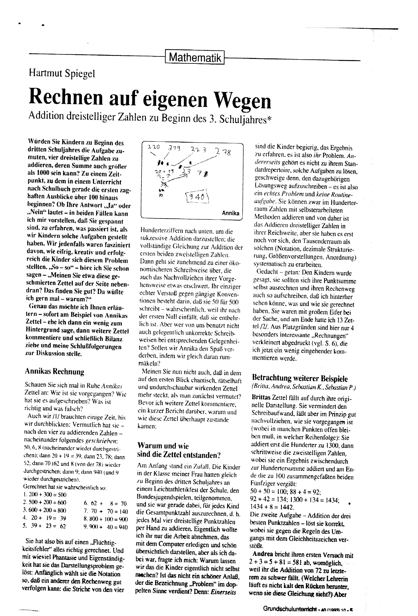 Rechnen auf eigenen Wegen : Addition dreistelliger Zahlen zu Beginn des 3. Schuljahres