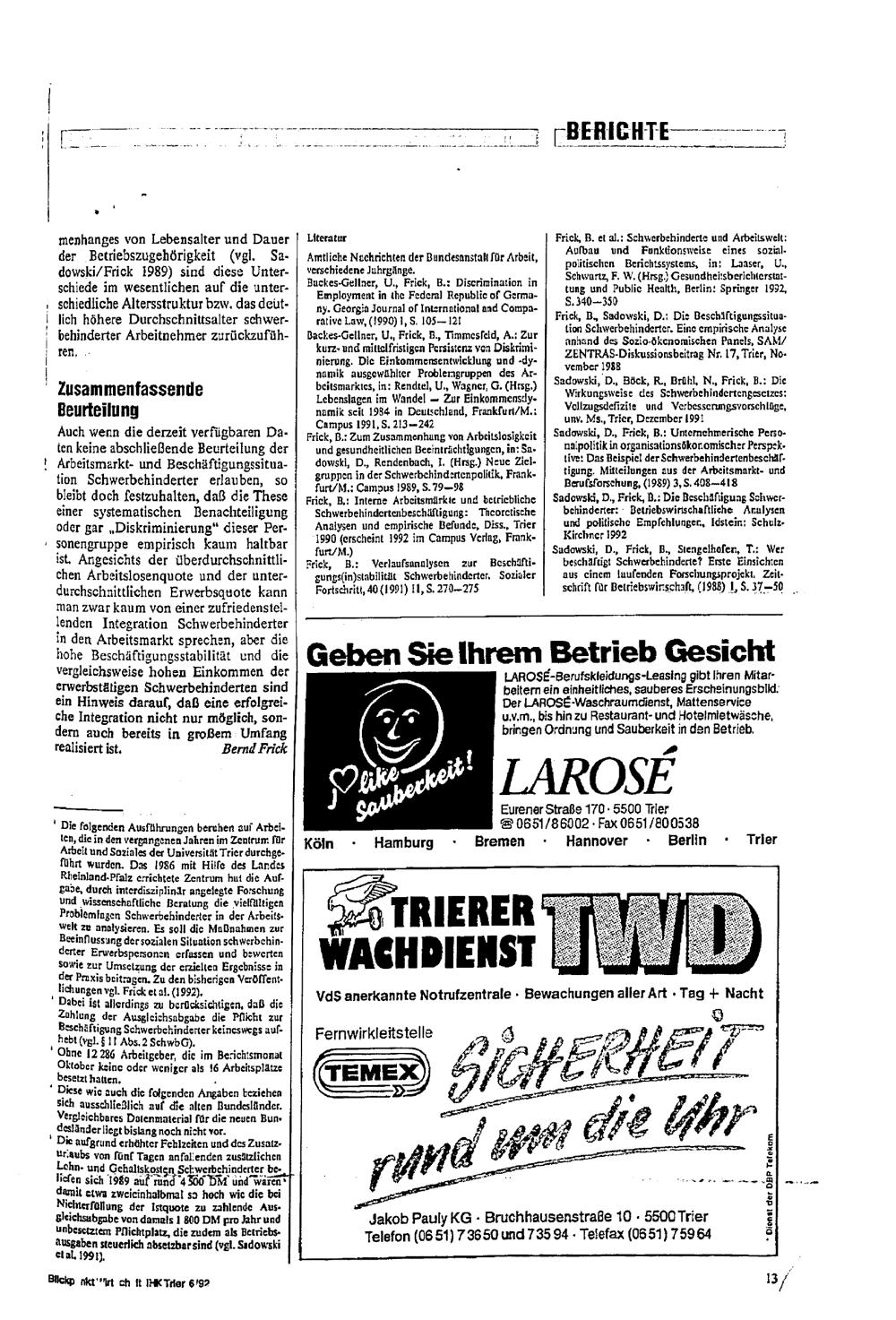 Keine Diskriminierung Schwerbehinderter erkennbar : betriebliche Personalpolitik und die Arbeitsmarktsituation Schwerbehinderter