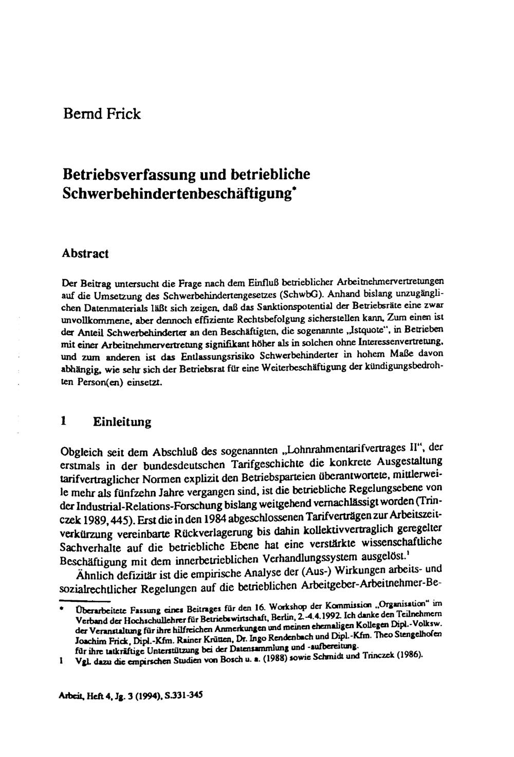 Betriebsverfassung und betriebliche Schwerbehindertenbeschäftigung