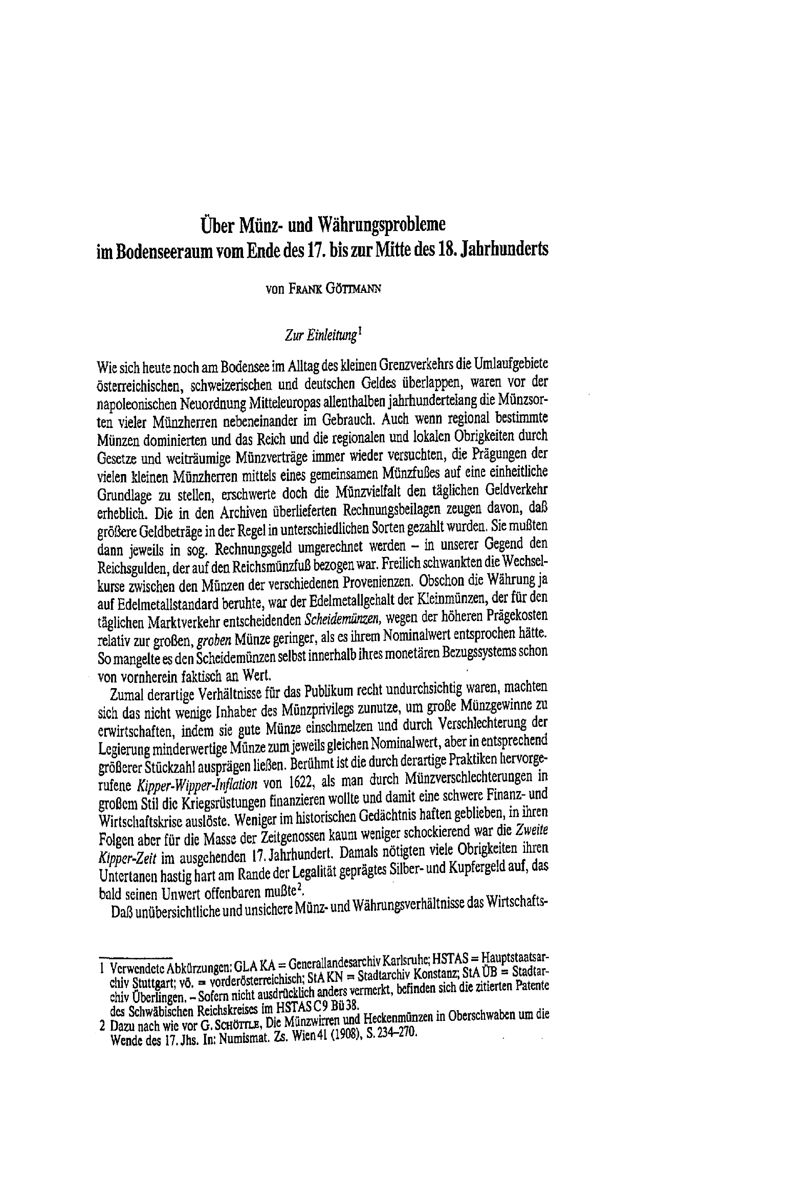 Über Münz- und Währungsprobleme im Bodenseeraum vom Ende des 17. bis zur Mitte des[...]