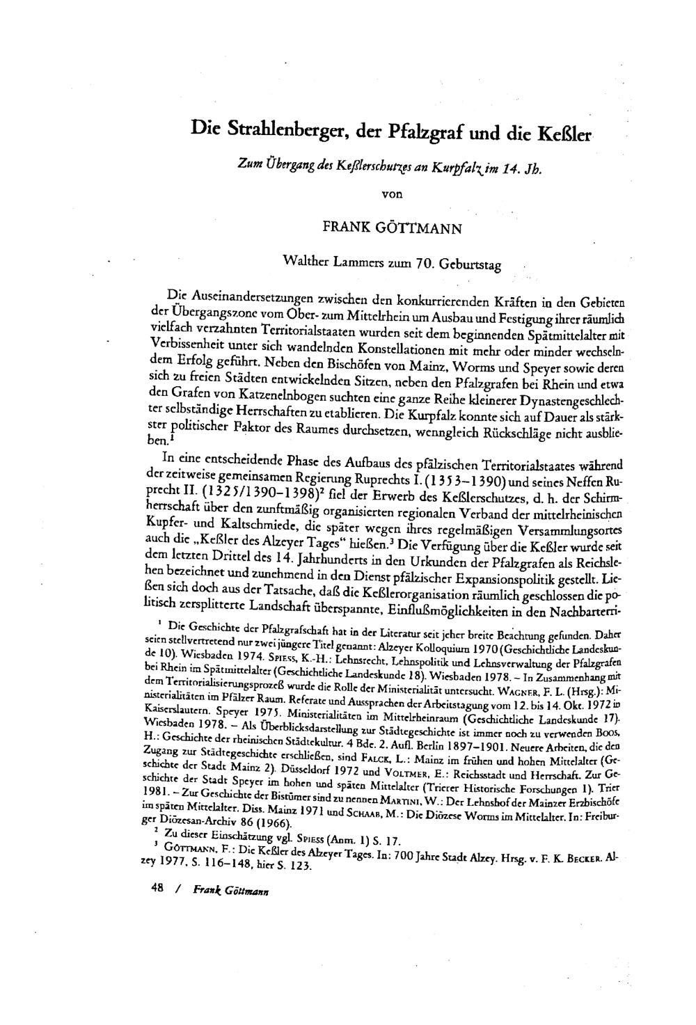 Die Strahlenberger, der Pfalzgraf und die Keßler : zum Übergang des Keßlerschutzes an Kurpfalz im 14. Jahrhundert