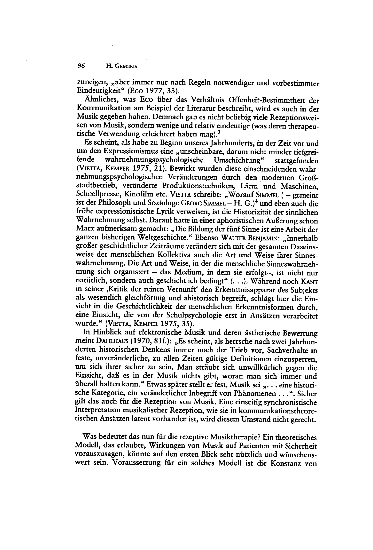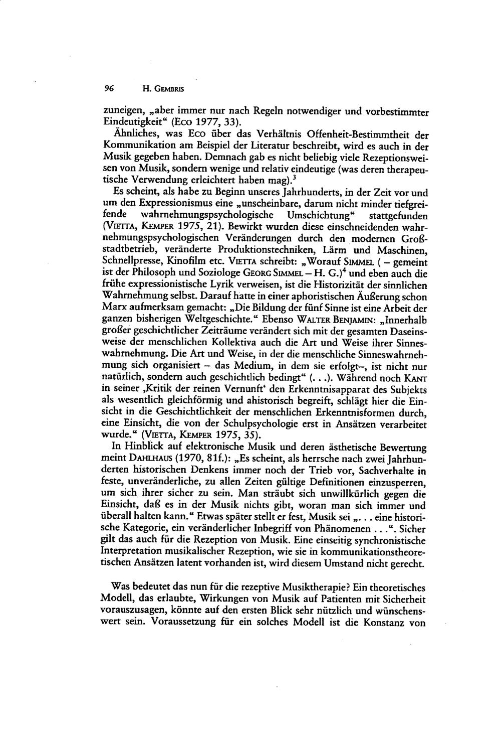 Teilprobleme der Forschung und Praxis in der rezeptiven Musiktherapie