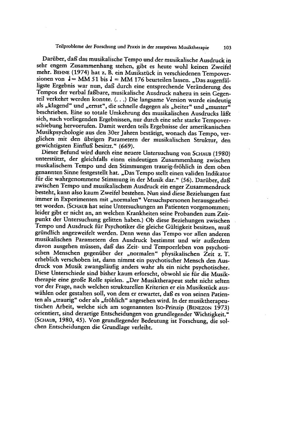 Teilprobleme der Forschung und Praxis in der rezeptiven Musiktherapie