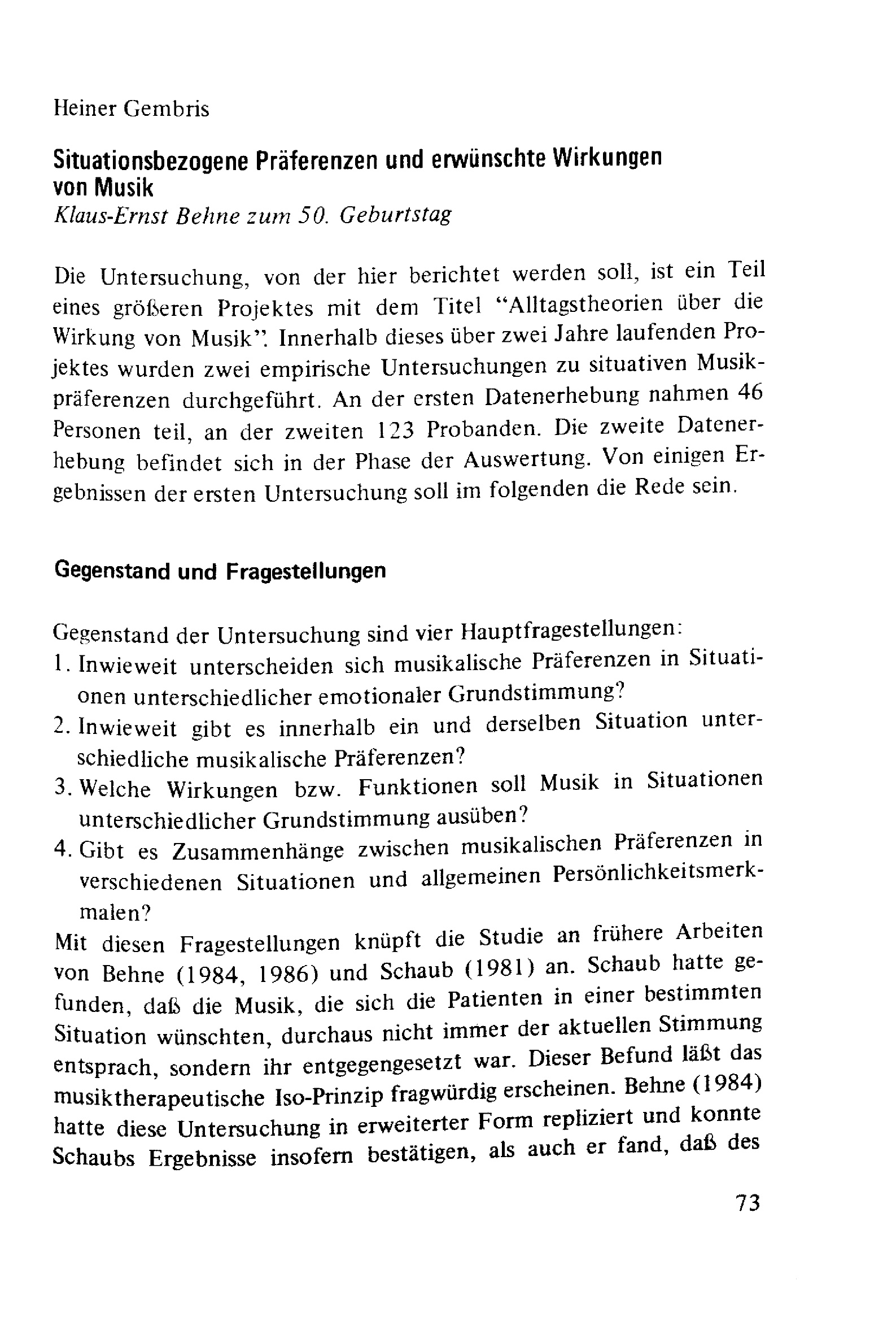 Situationsbezogene Präferenzen und Wirkungen von Musik : Klaus-Ernst Behne zum 50. Geburtstag