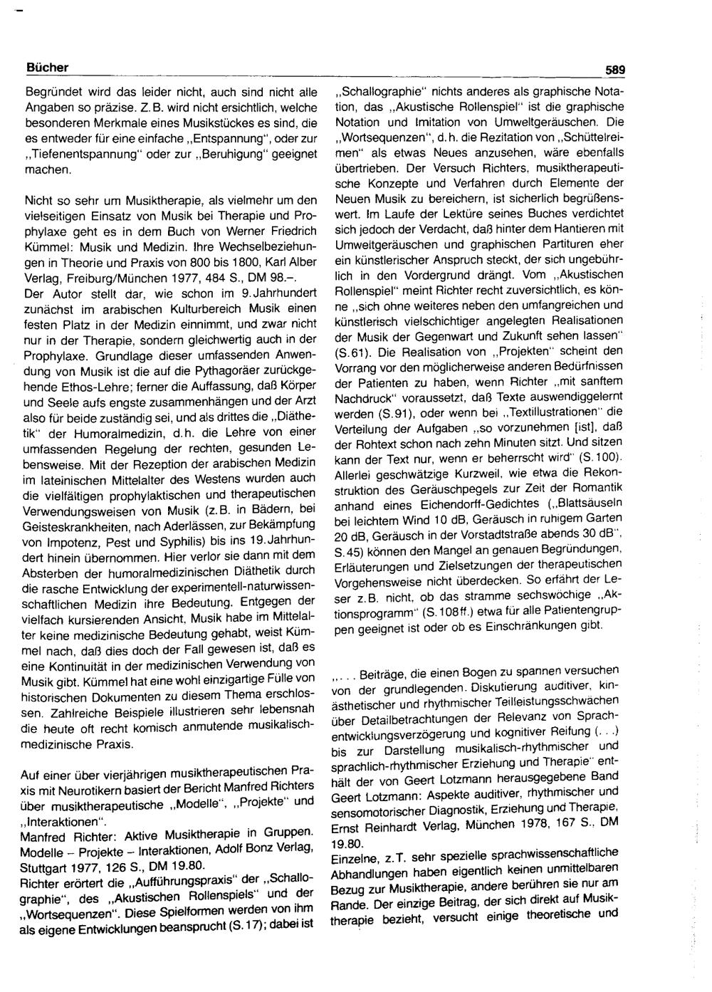 Neuere Bücher über Musiktherapie : ein Literaturbericht