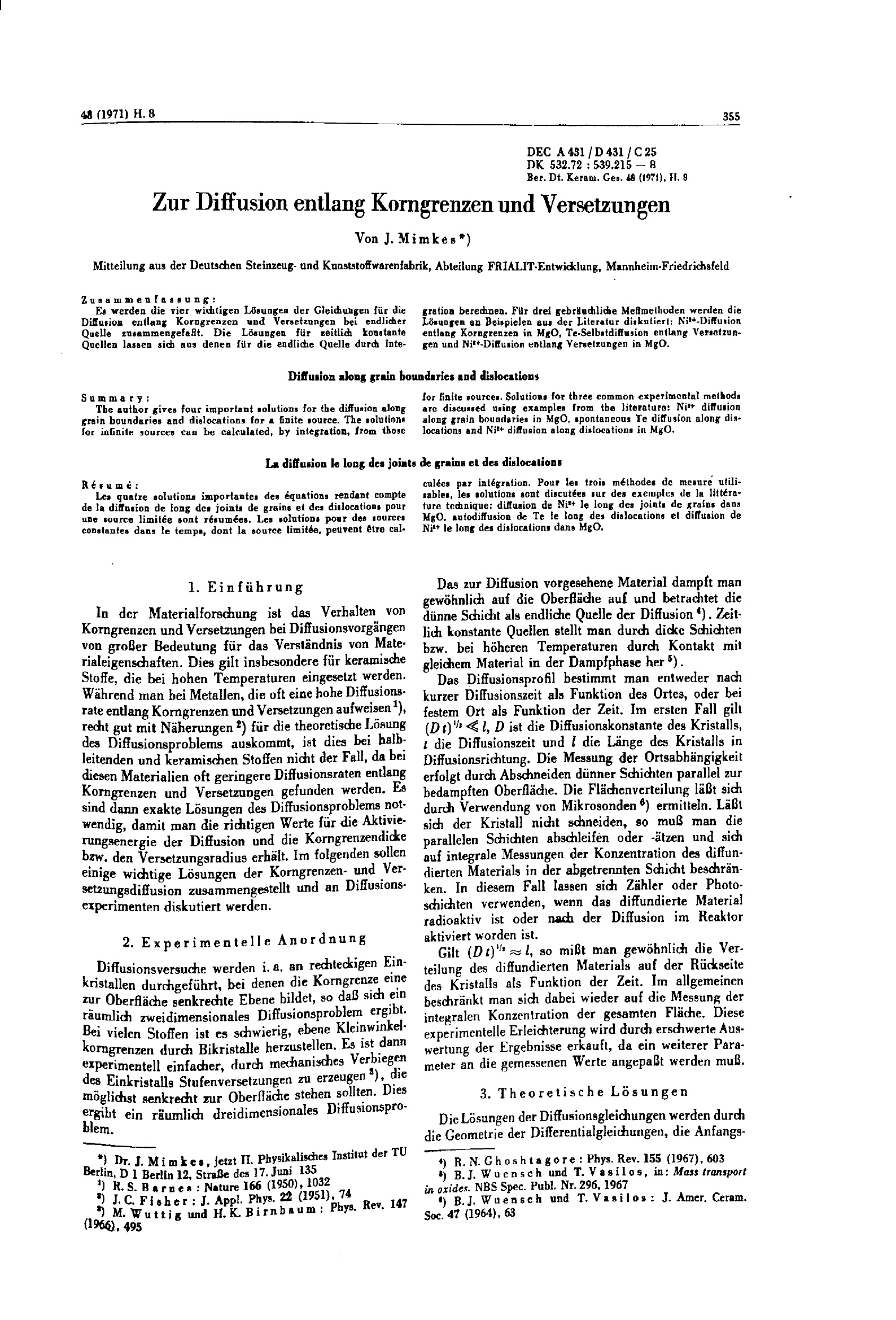 Zur Diffusion entlang Korngrenzen und Versetzungen