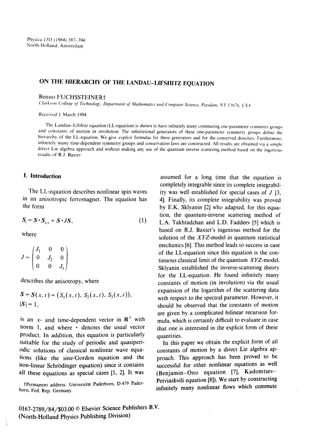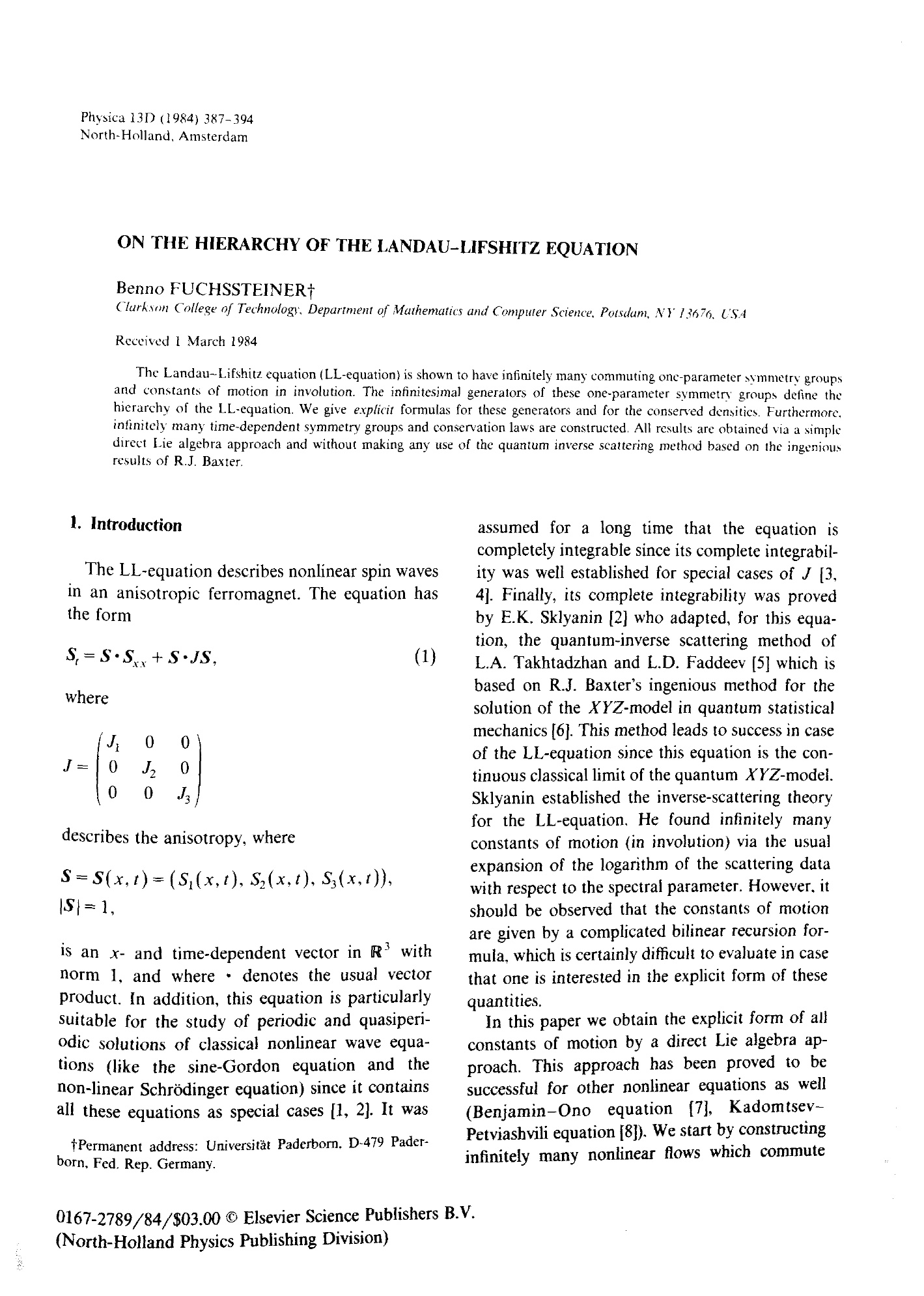 On the hierarchy of the Landau-Lifshitz equation