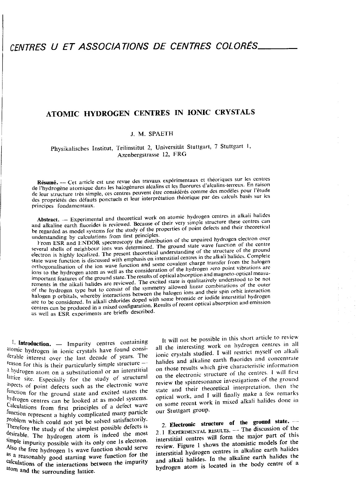 Atomic hydrogen centres in ionic crystals