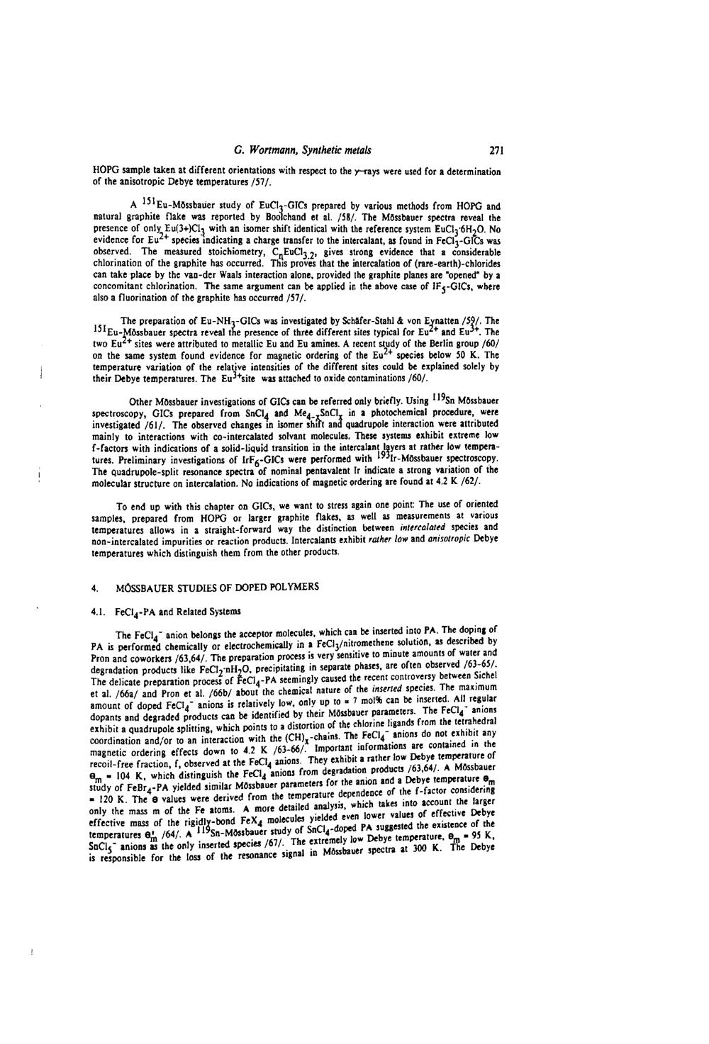 Synthetic metals : applications of the Mössbauer effect and other methods