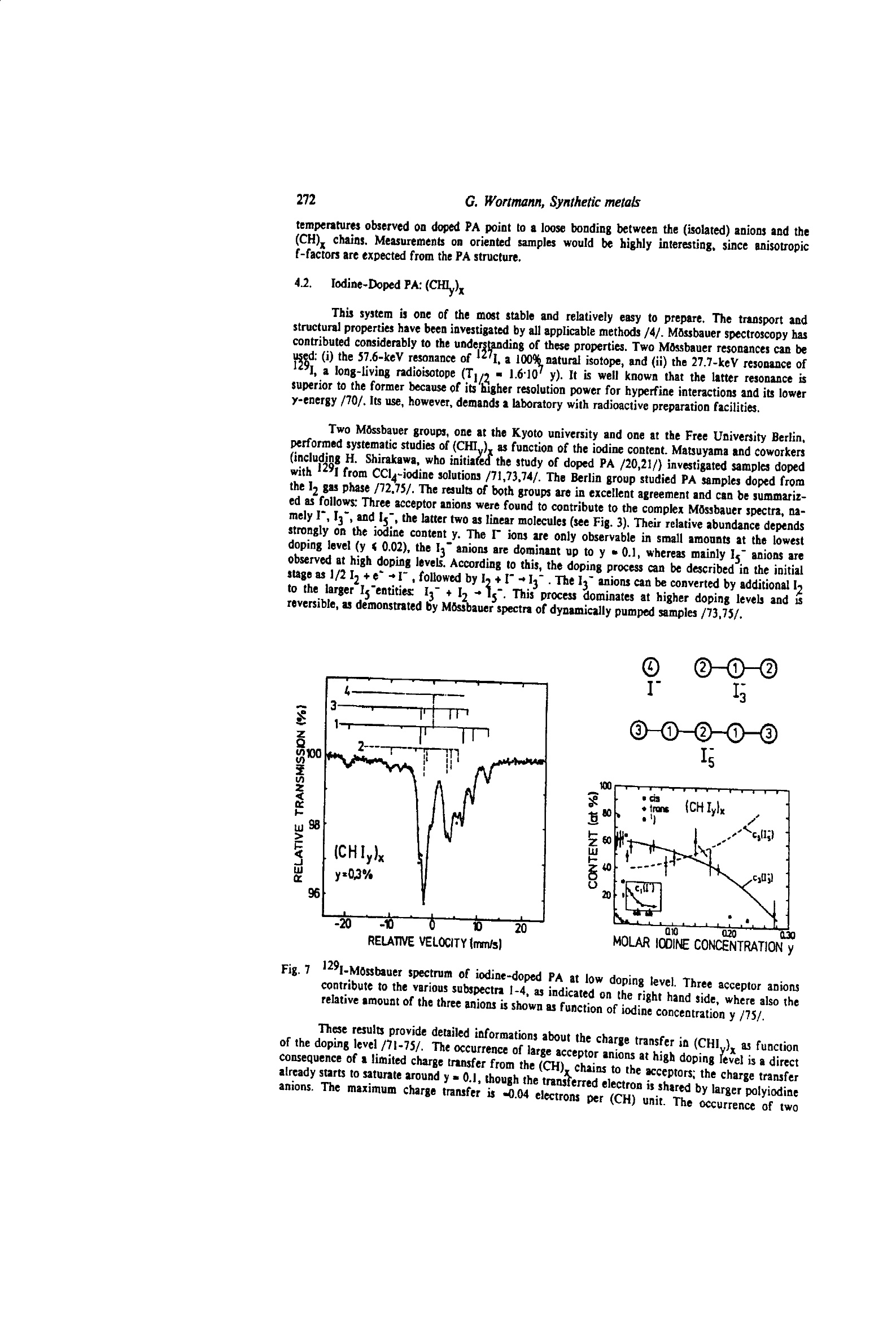 Synthetic metals : applications of the Mössbauer effect and other methods