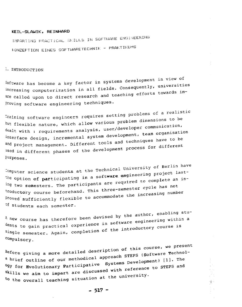 Imparting practical skills in software engineering