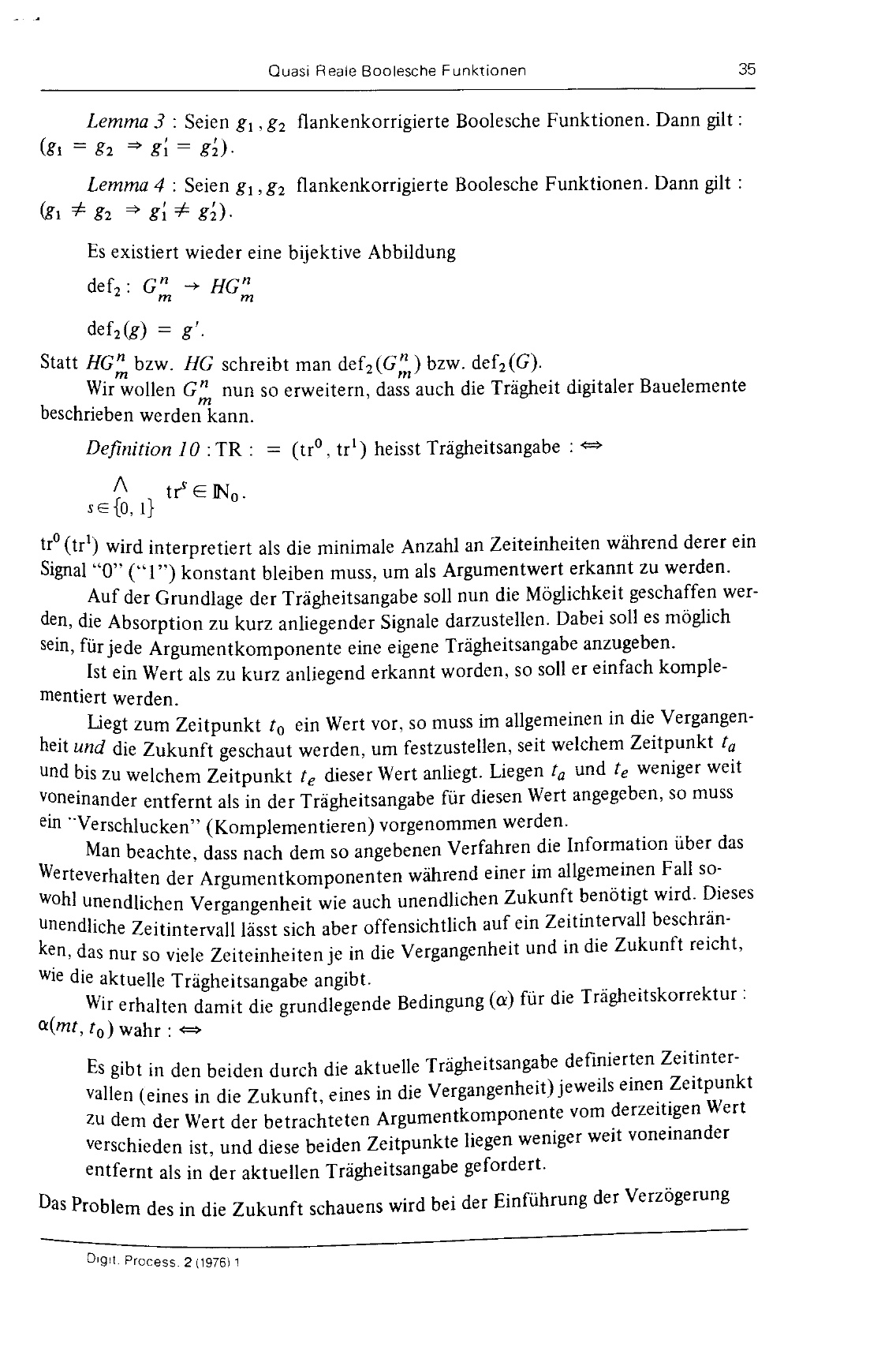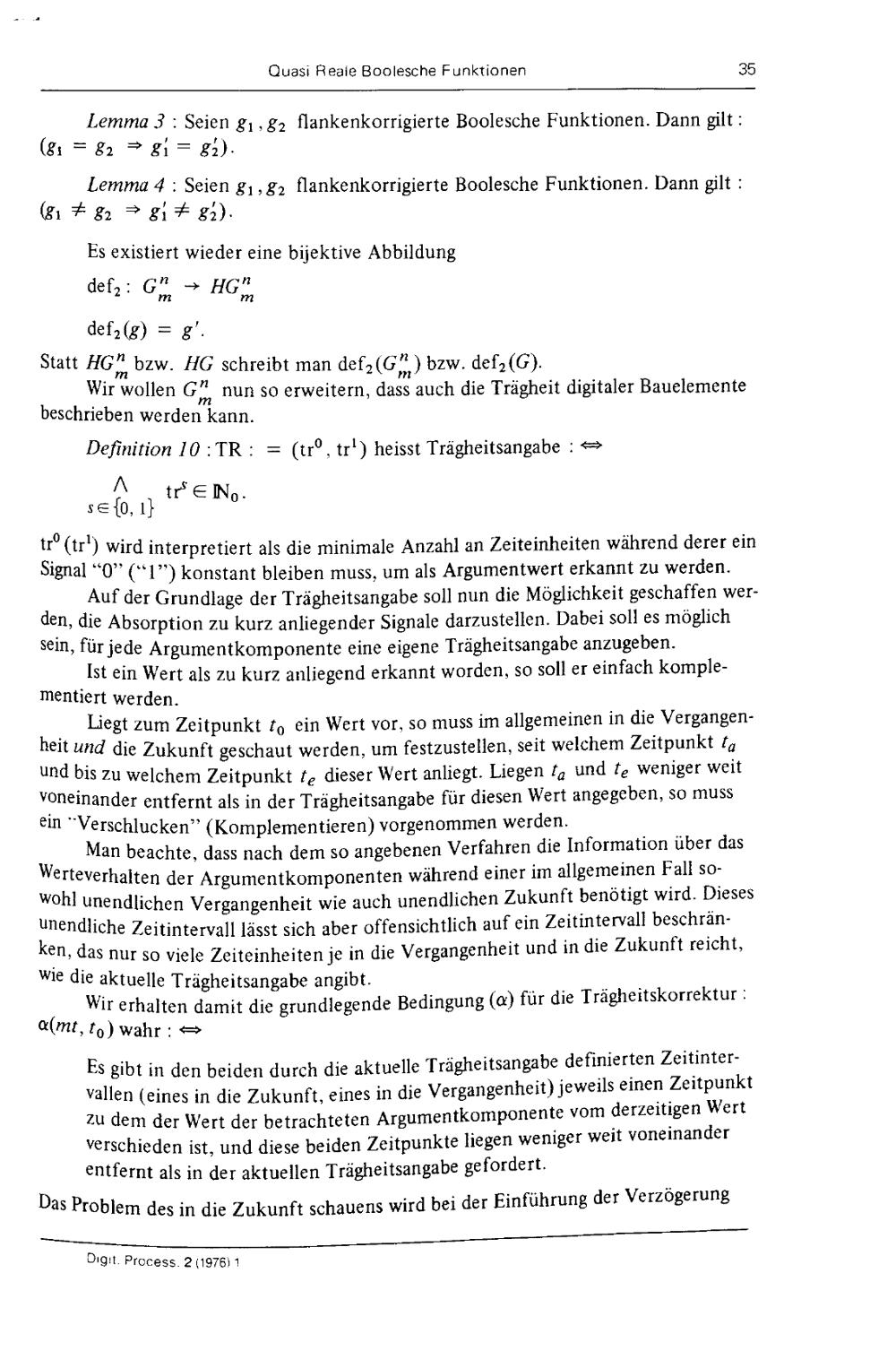 Quasi reale Boolesche Funktionen : ein Versuch, zeitliche Effekte physikalisch realisierter Bauteile zu algebraisieren