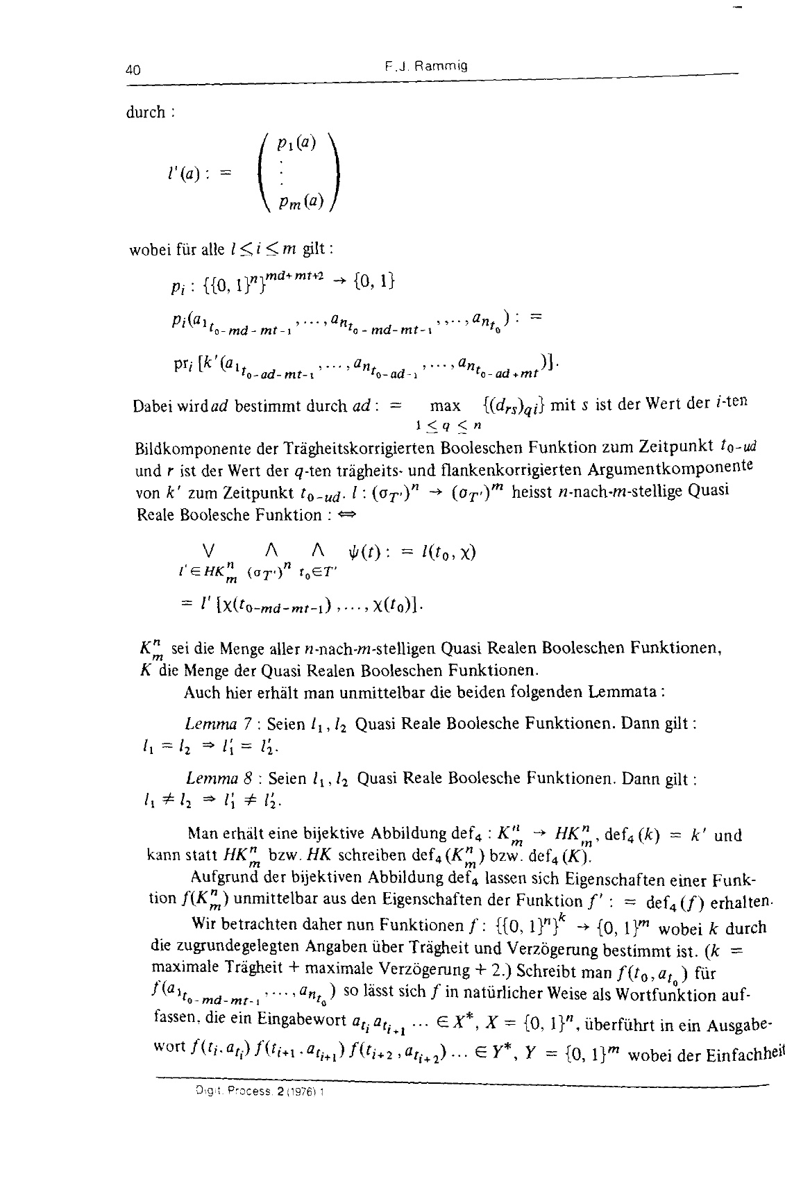 Quasi reale Boolesche Funktionen : ein Versuch, zeitliche Effekte physikalisch realisierter Bauteile zu algebraisieren