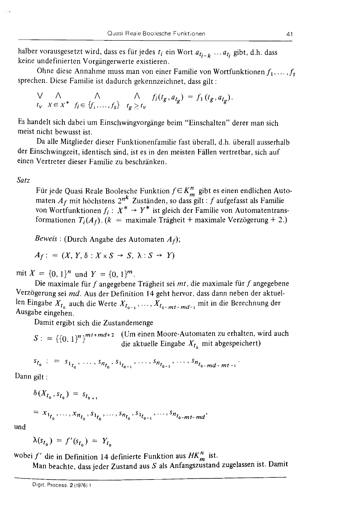 Quasi reale Boolesche Funktionen : ein Versuch, zeitliche Effekte physikalisch realisierter Bauteile zu algebraisieren