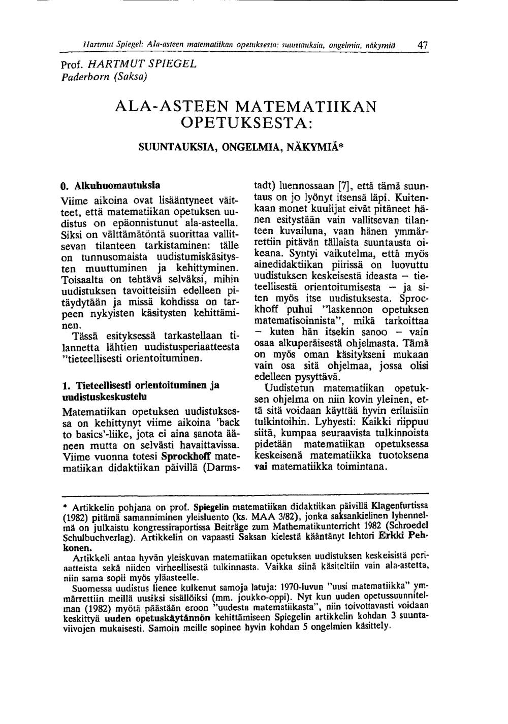 Ala-asteen matematiikan opetuksesta : suuntauksia, ongelmia, näkymiä