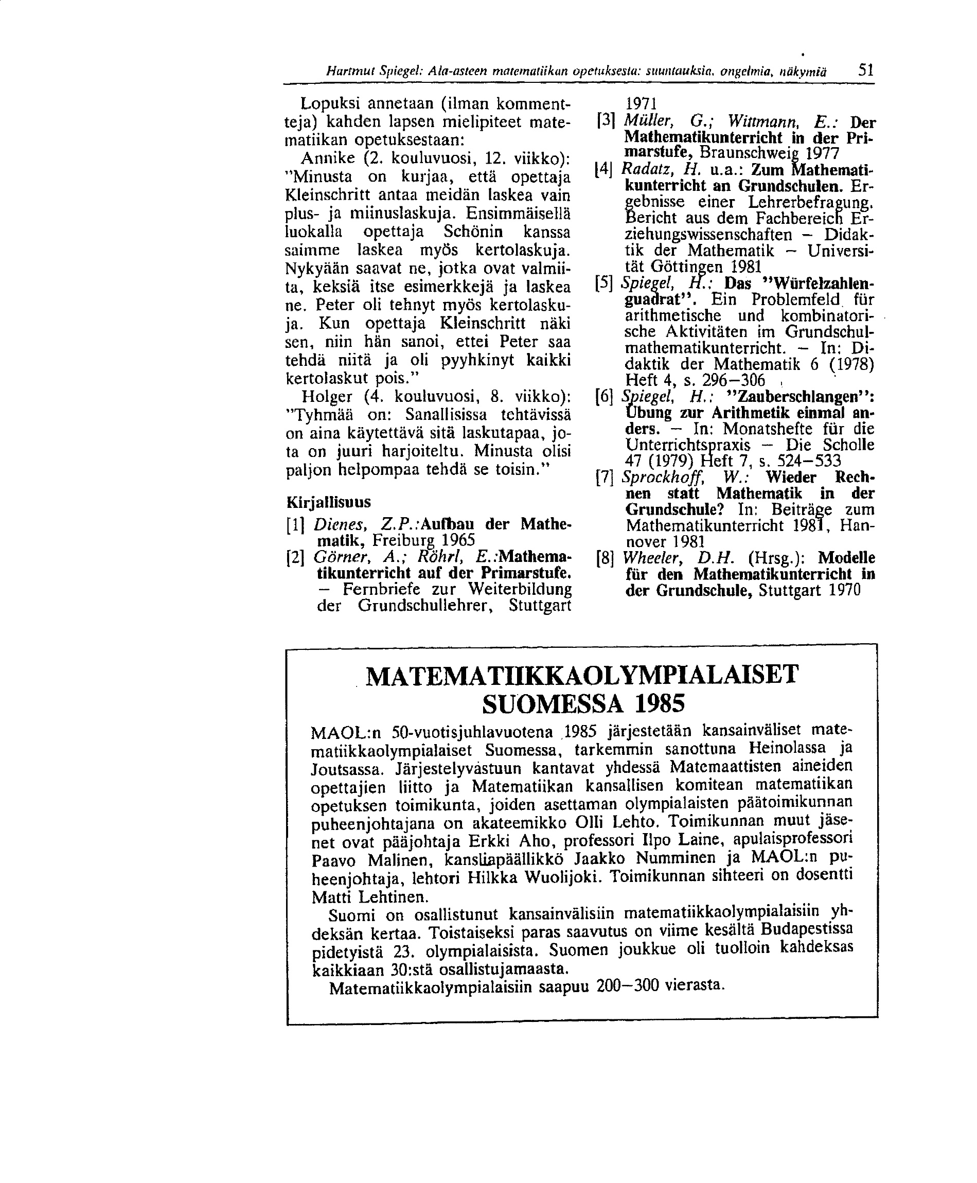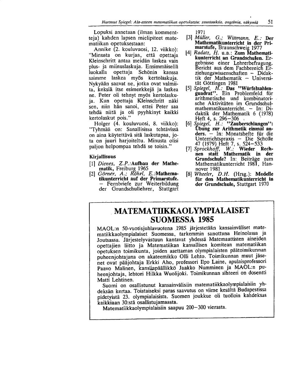 Ala-asteen matematiikan opetuksesta : suuntauksia, ongelmia, näkymiä