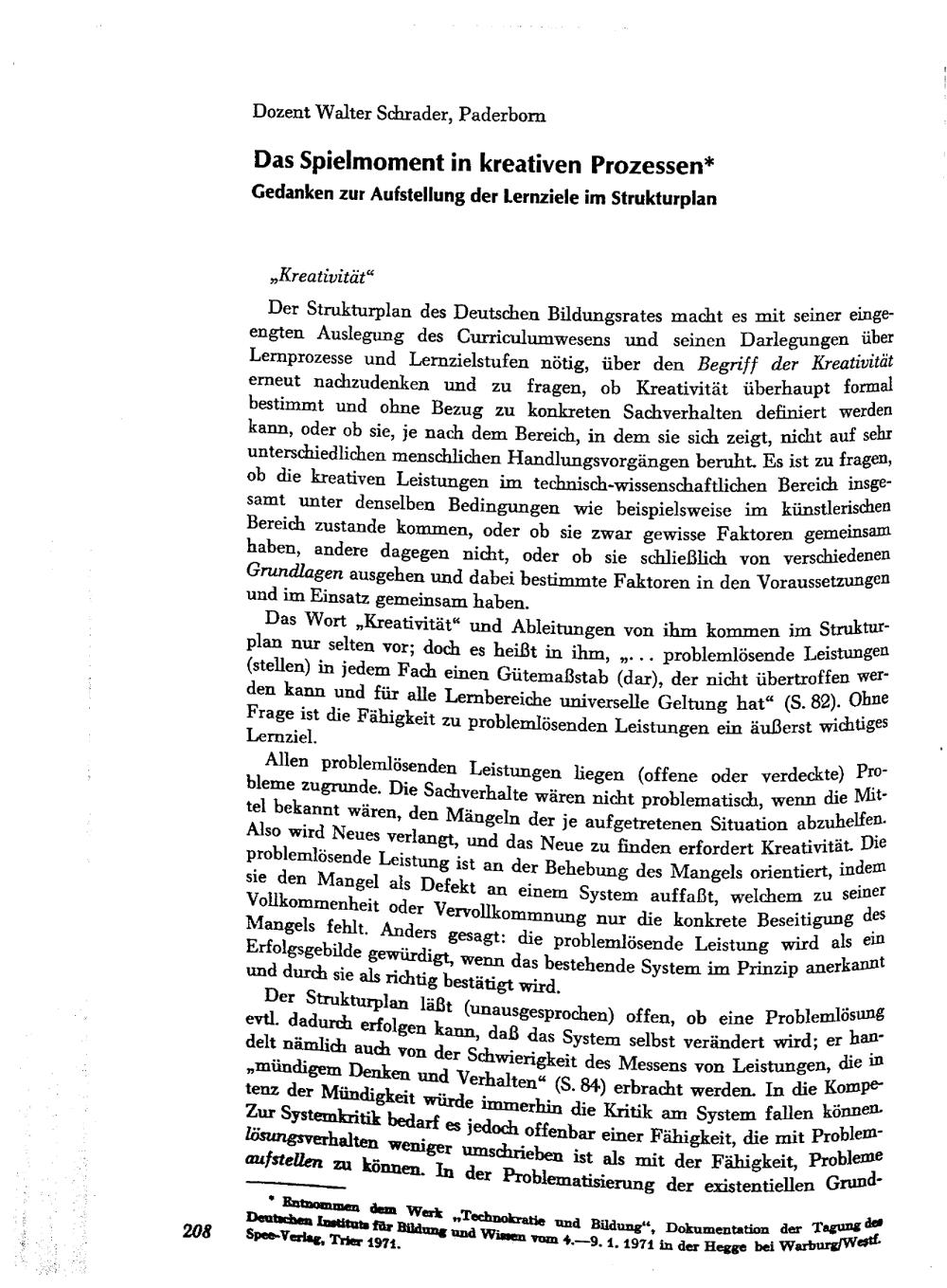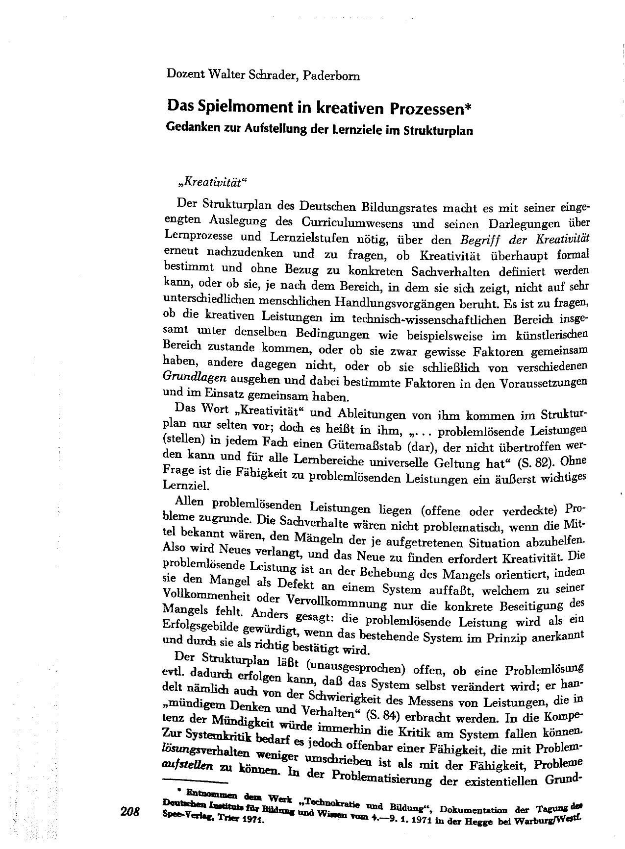 Das Spielmoment in kreativen Prozessen : Gedanken zur Aufstellung der Lernziele im Strukturplan