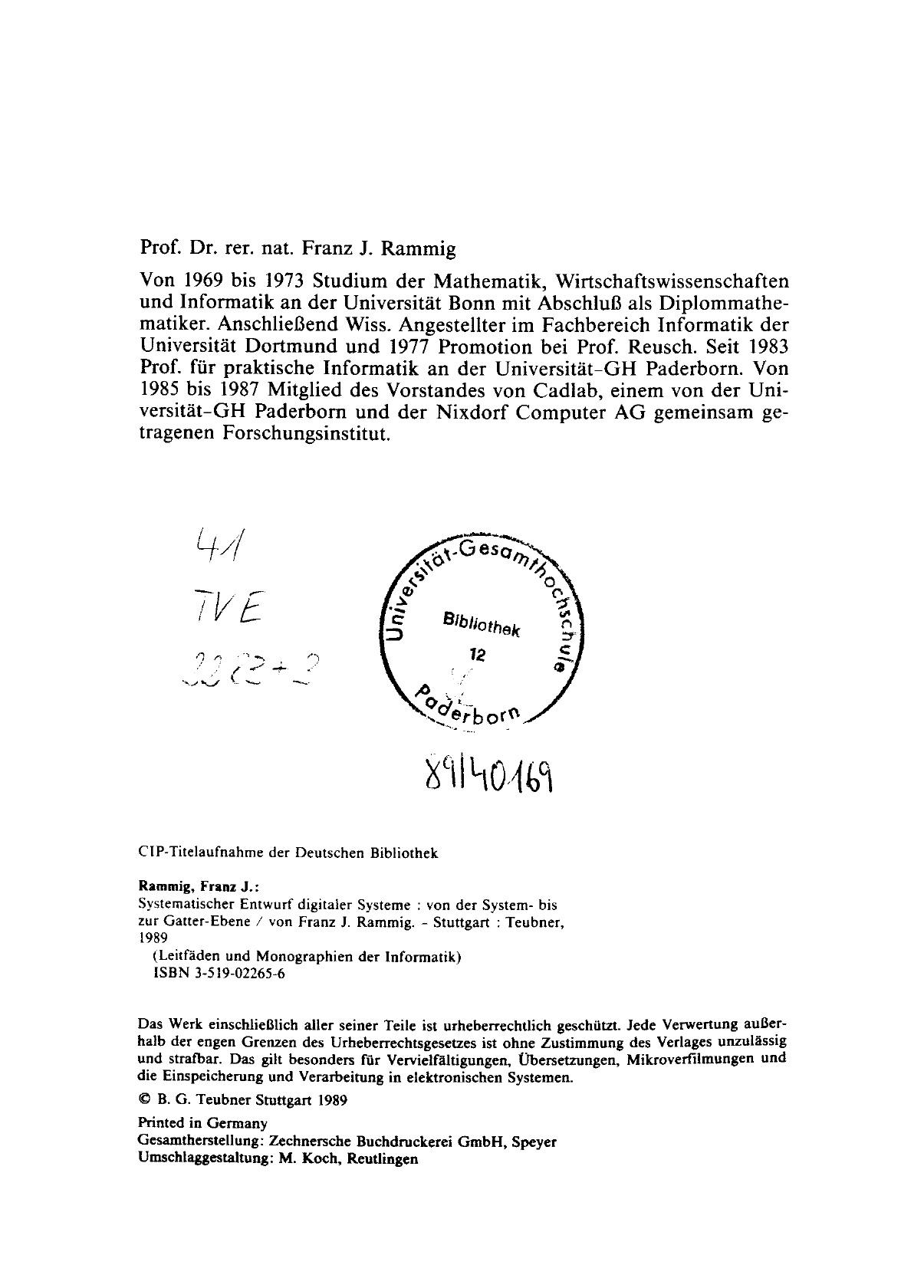Systematischer Entwurf digitaler Systeme : von der System- bis zur Gatter-Ebene