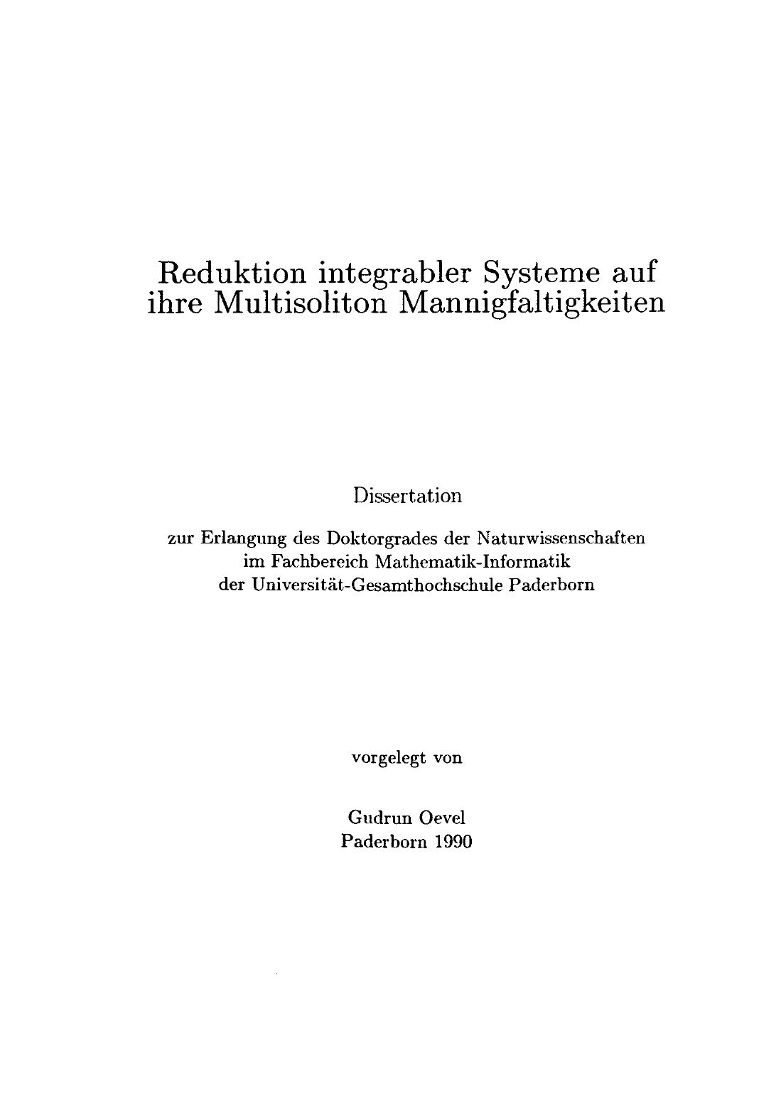 Reduktion integrabler Systeme auf ihre Multisoliton Mannigfaltigkeiten